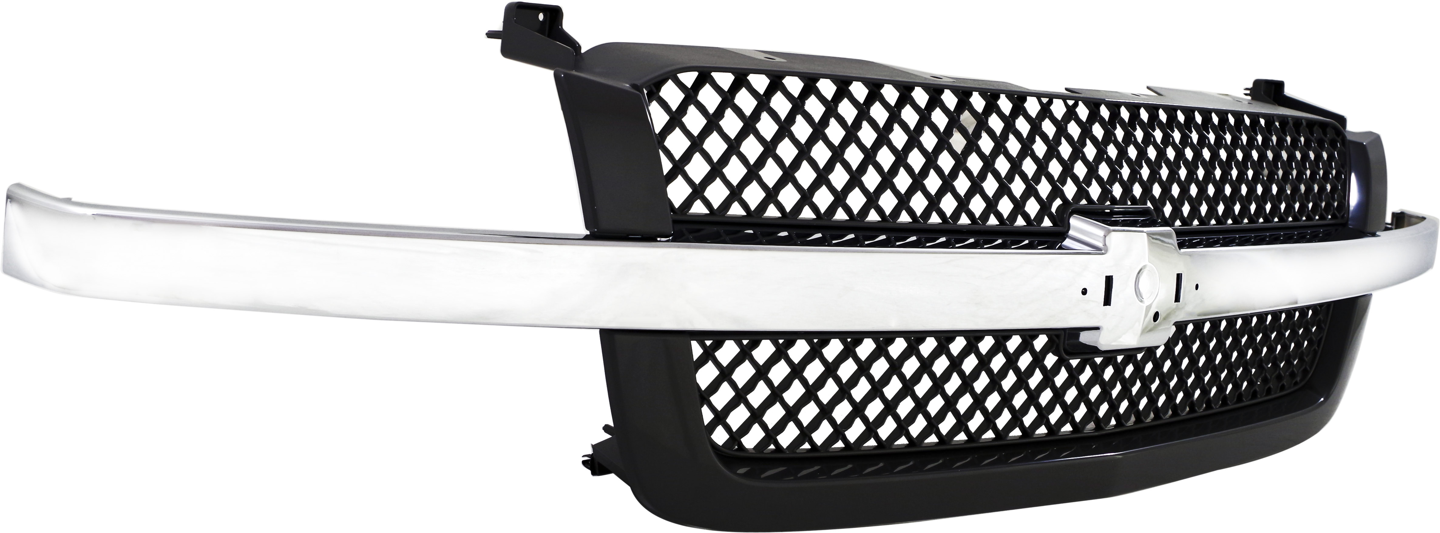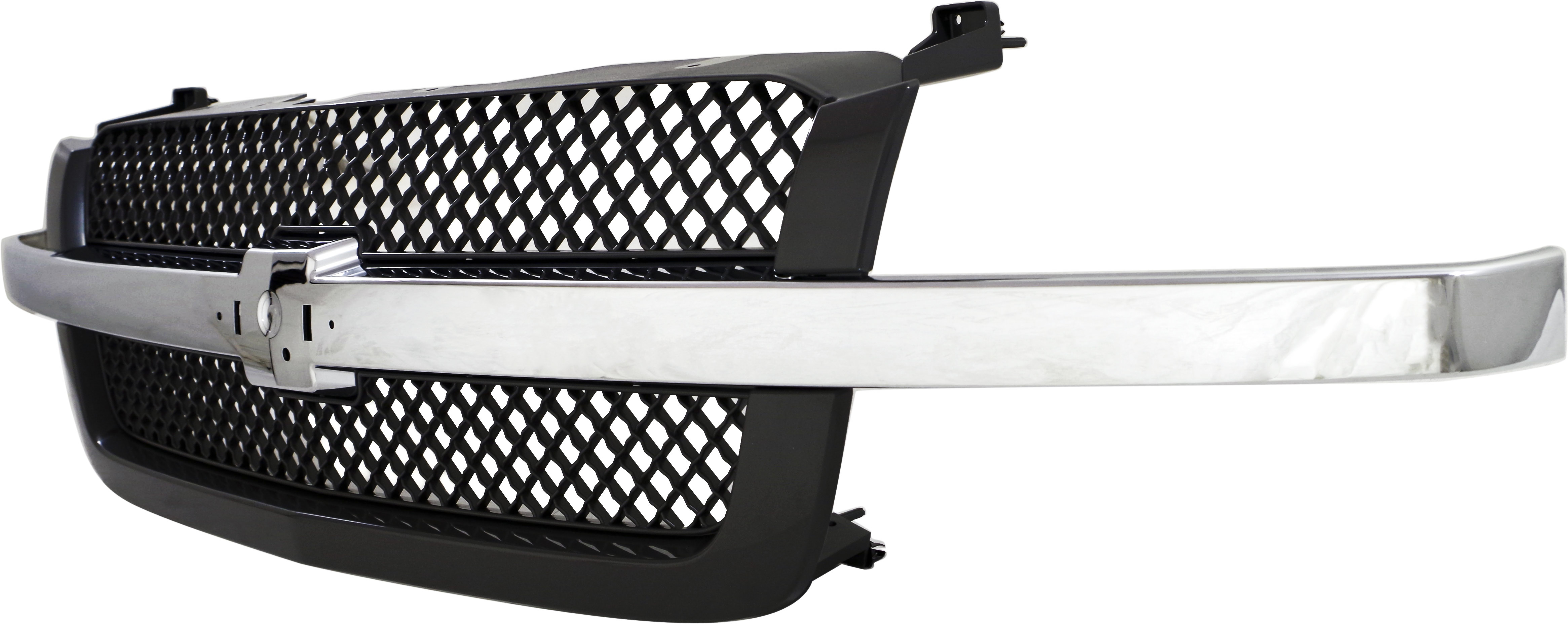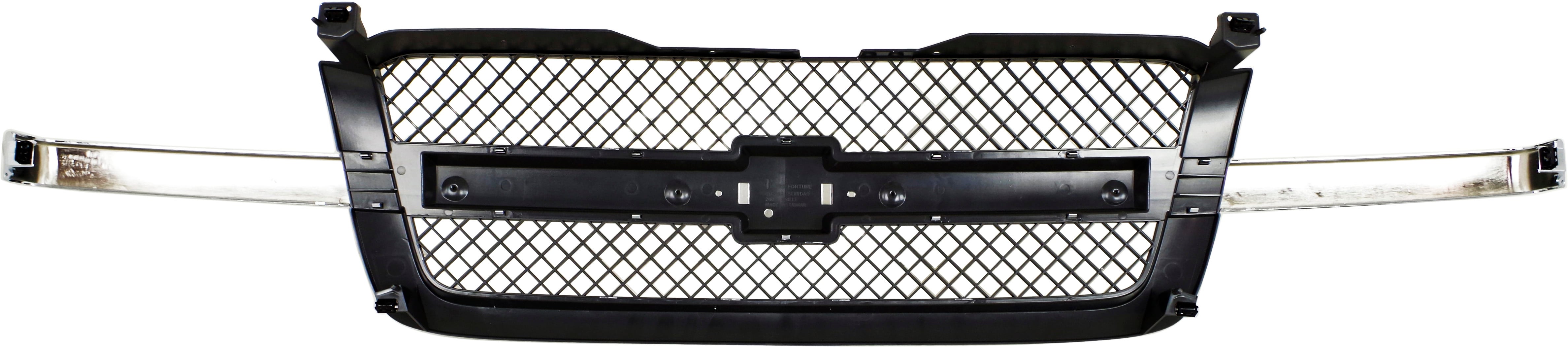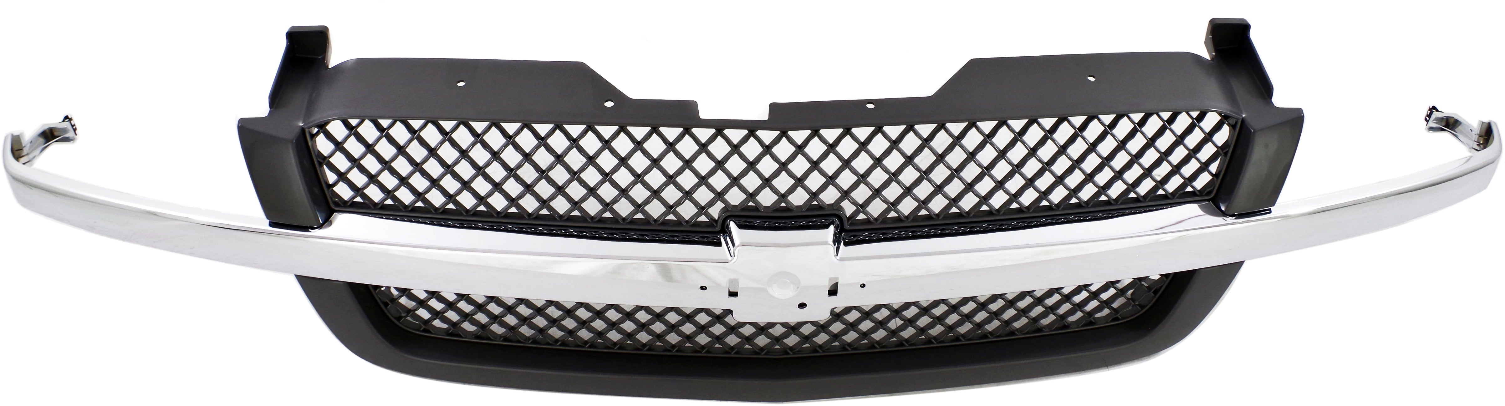 Fits Years: 2002 2003 2004 2005 2006 2007 Mesh Grille for Chevrolet Silverado 2003-2006 and Avalanche 2003-2006 without Body Cladding, Base/LS/LT Models, Gray, with Chrome Center Bar, Includes 2007 Classic, Replacement