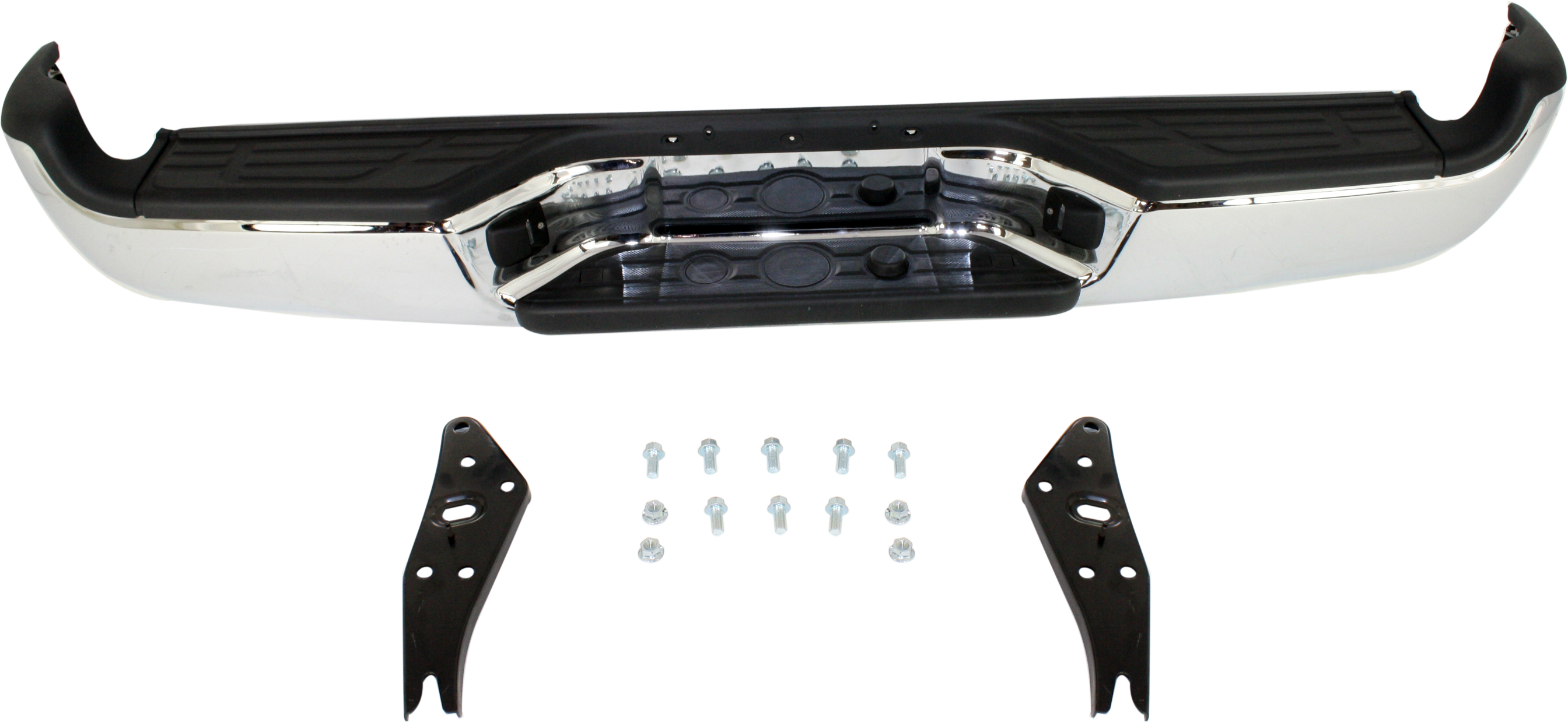 Fits Years: 2005 2006 2007 2008 2009 2010 2011 2012 2013 2014 2015 Step Bumper Face Bar and Pad for 2005-2015 Toyota Tacoma, With Pad Provision, With Mounting Bracket, Chrome Finish, Without Sensor Holes, With SR5 Package, Replacement