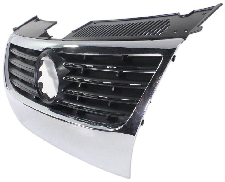 Fits Years: 2006 2007 2008 2009 2010 Grille for Volkswagen Passat 2006-2010, Chrome Shell with Black Insert, Without Park Assist System and Park Distance Control Holes, without Chrome Insert Molding, Replacement