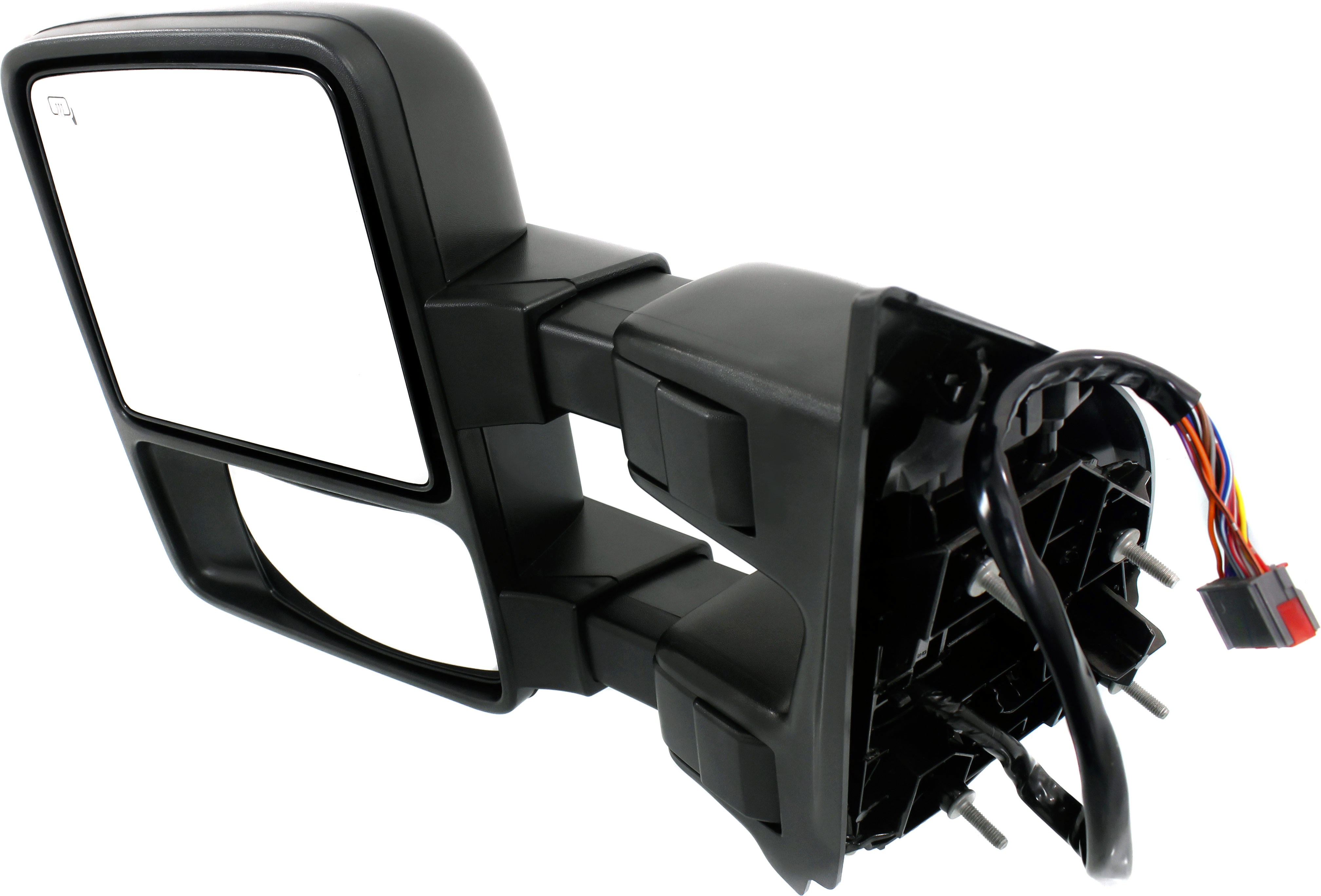 Fits Years: 2008 Towing Mirror for Ford F-Series Super Duty 2008-2009, Left (Driver), Power Operated, Power Folding, Heated, Textured, with Auto Extend, Memory, and Signal Light, Replacement