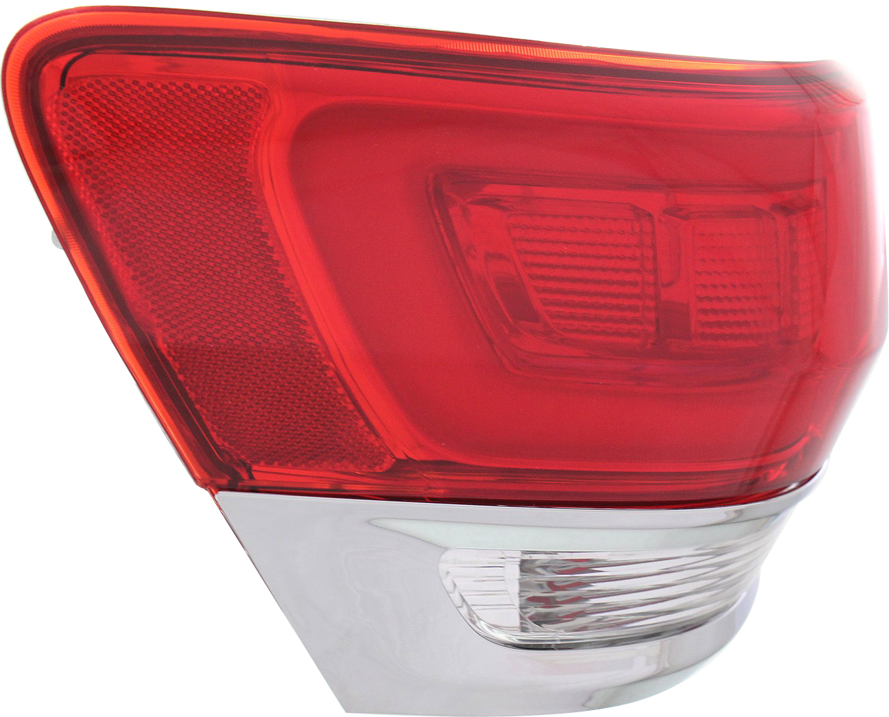 Fits Years: 2014 2015 2016 2017 2018 2019 2020 2021 2022 Tail Light Assembly for Grand Cherokee WK 2014-2022, Left (Driver), Outer, Excluding SRT/Trailhawk/Trackhawk Models, with Chrome Trim, Jeep, Replacement