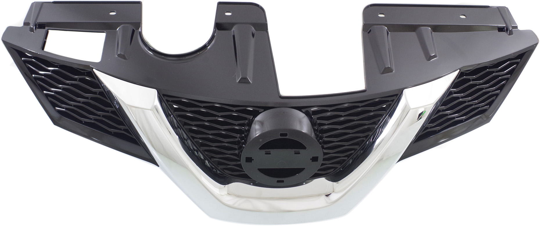 Fits Years: 2014 2015 Grille for Nissan Rogue 2014-2015, Painted Black with Chrome Molding, Without Hole, S/SV Model without Premium Package, USA Built Until March 2015, Replacement (CAPA Certified)