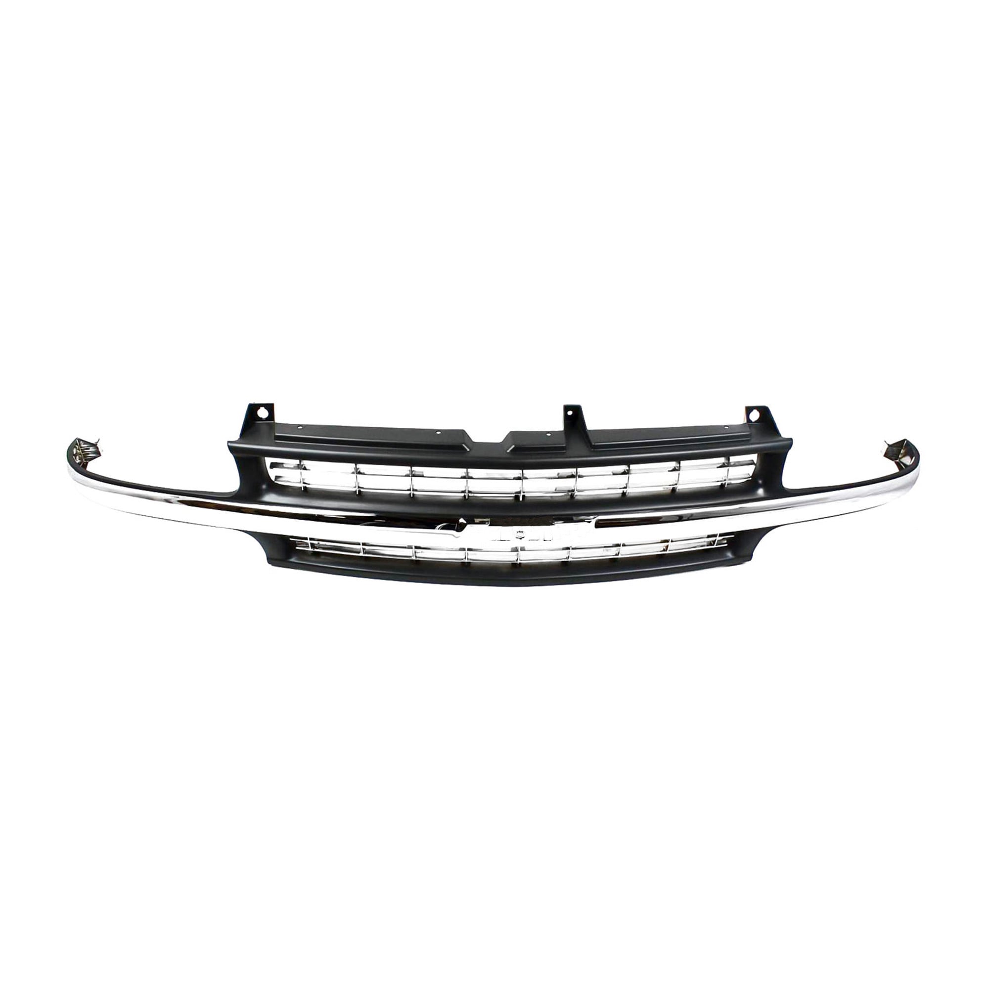 Fits Years: 1999 2000 2001 2002 Cross Bar Insert Grille for 1999-2002 Chevrolet Silverado, 2000-2006 Suburban/Tahoe, Plastic, Dark Gray with Chrome Center Bar, Replacement