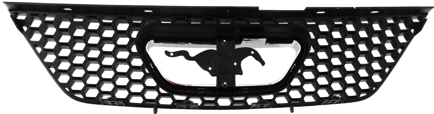 Fits Years: 1999 2000 2001 2002 2003 2004 Textured Black Shell and Insert Grille for 1999-2004 Ford Mustang, without Emblem, Replacement