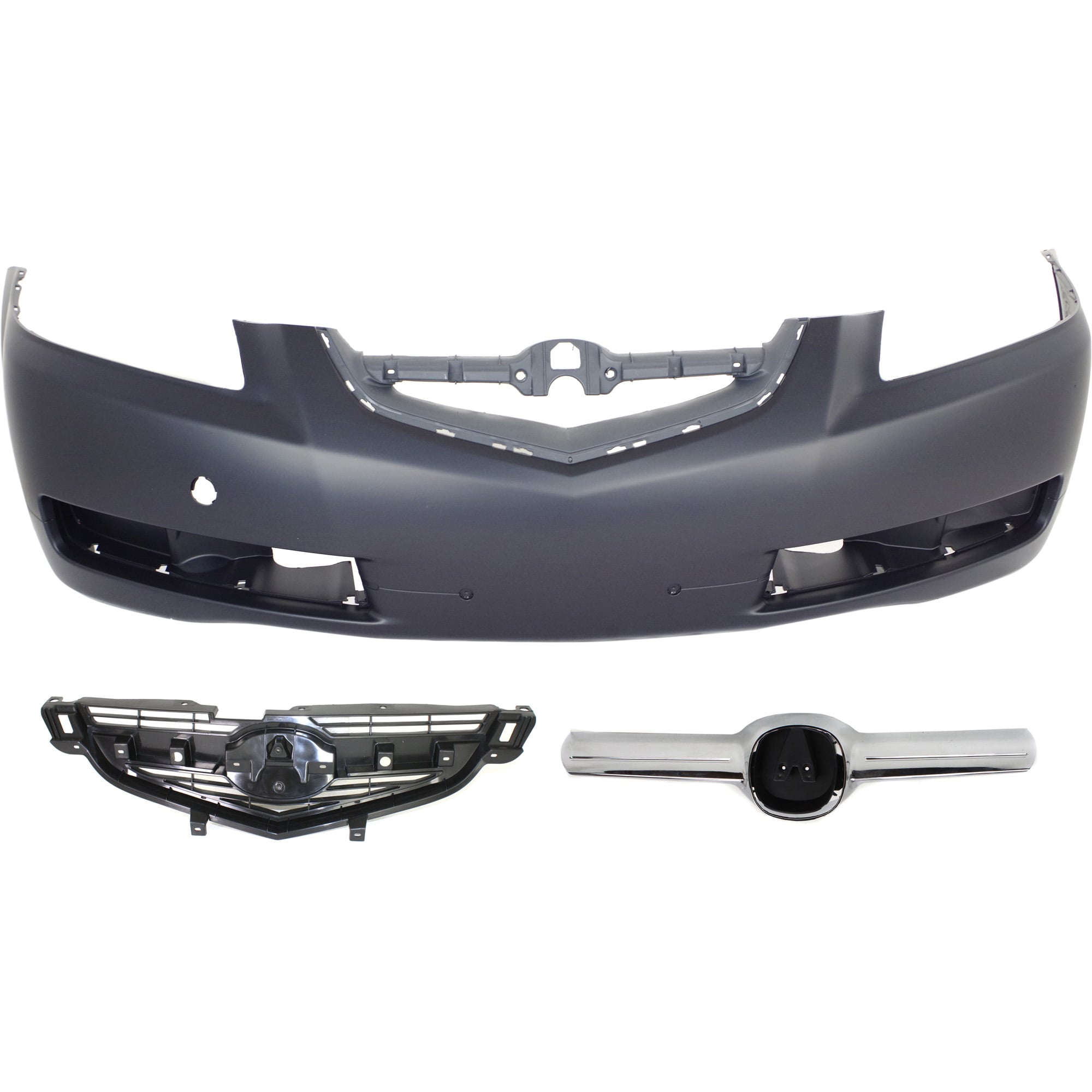 Front Bumper Cover Assembly Kit for Acura TL 2004-2006, 3-Piece with Grille and Grille Trim, Replacement