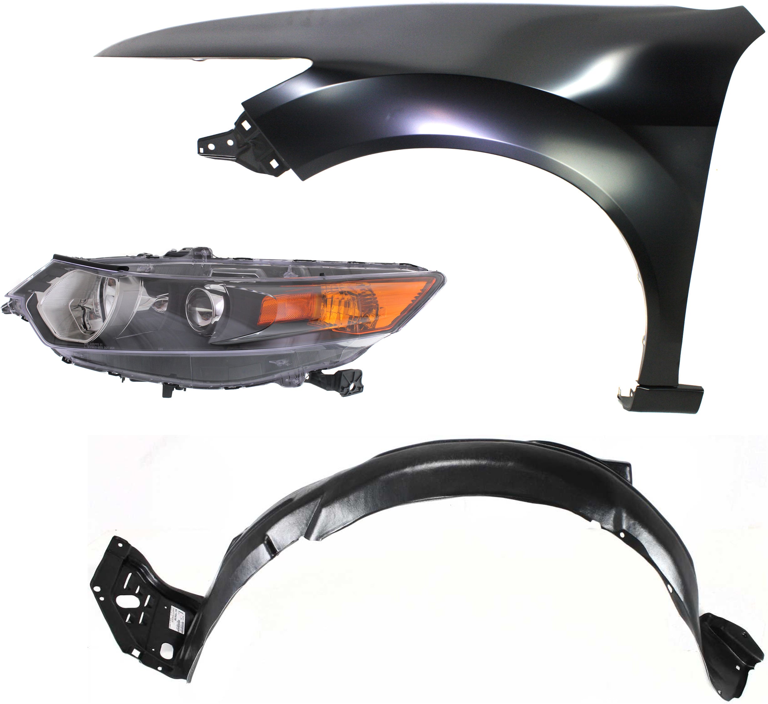 Headlight for Acura TSX 2009-2014 Left (Driver) Side, Lens and Housing, Xenon, 3-Piece Kit with Fender and Fender Liner Replacement
