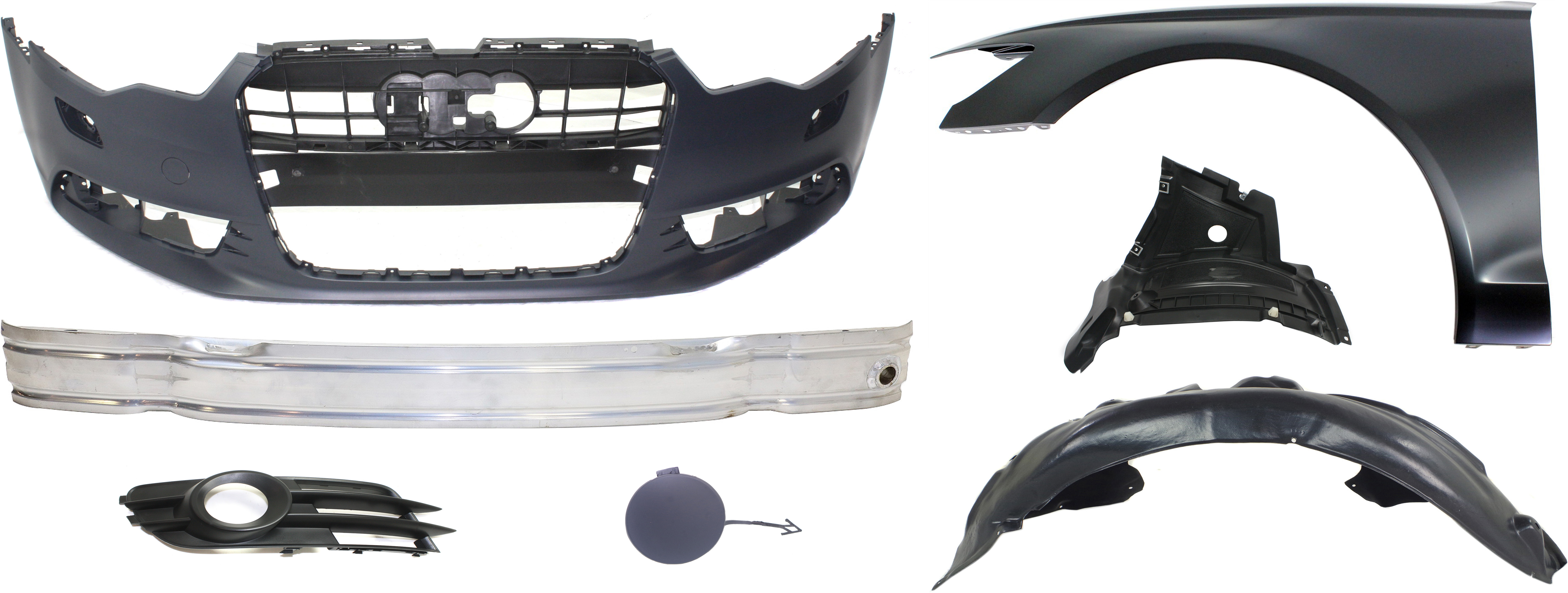 Front Reinforcement Kit for Audi A6/A6 Quattro 2012-2015, 5-Piece Set with Bumper Cover, Tow Eye Cover, and Fog Light Trims, Replacement Parts