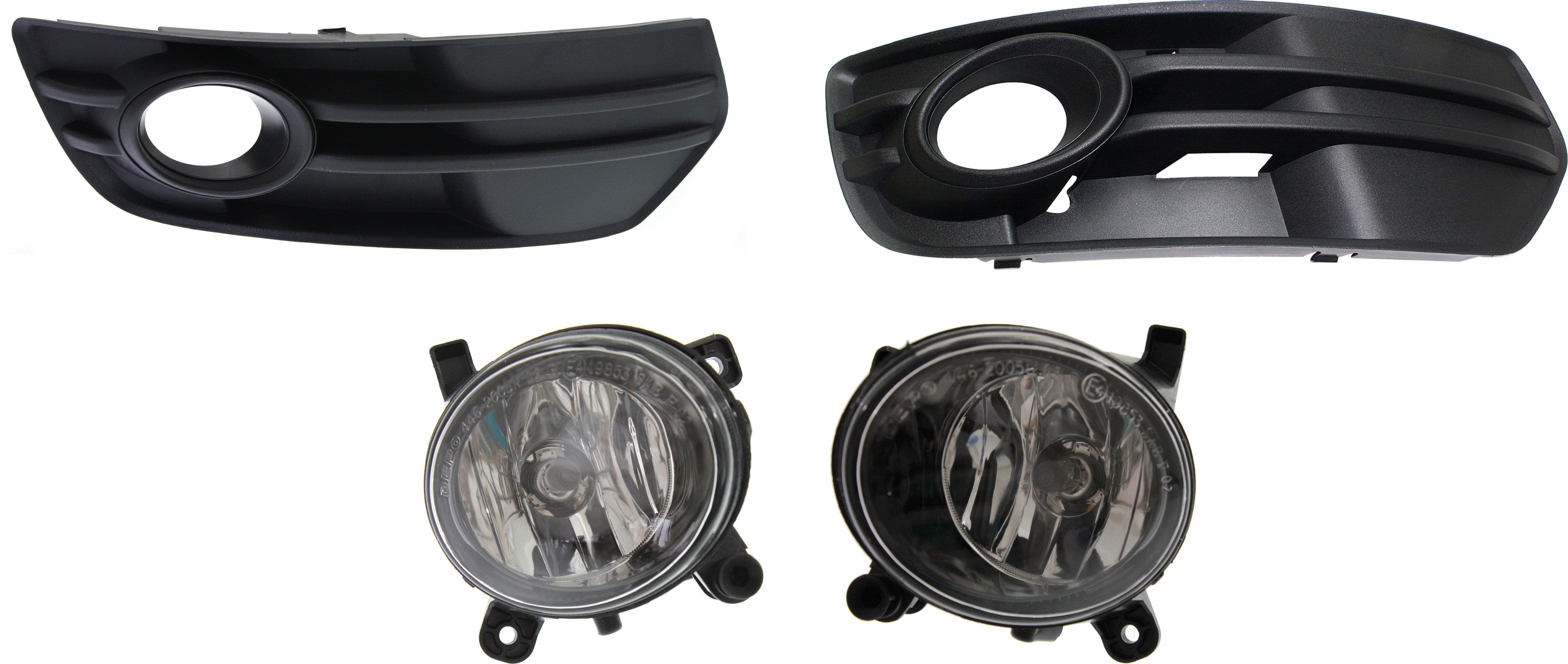 Fog Light Assembly Kit for Audi A4/A4 QUATTRO 2009-2012, Right (Passenger) and Left (Driver), 4-Piece, Halogen, Includes Fog Light Trim, Replacement