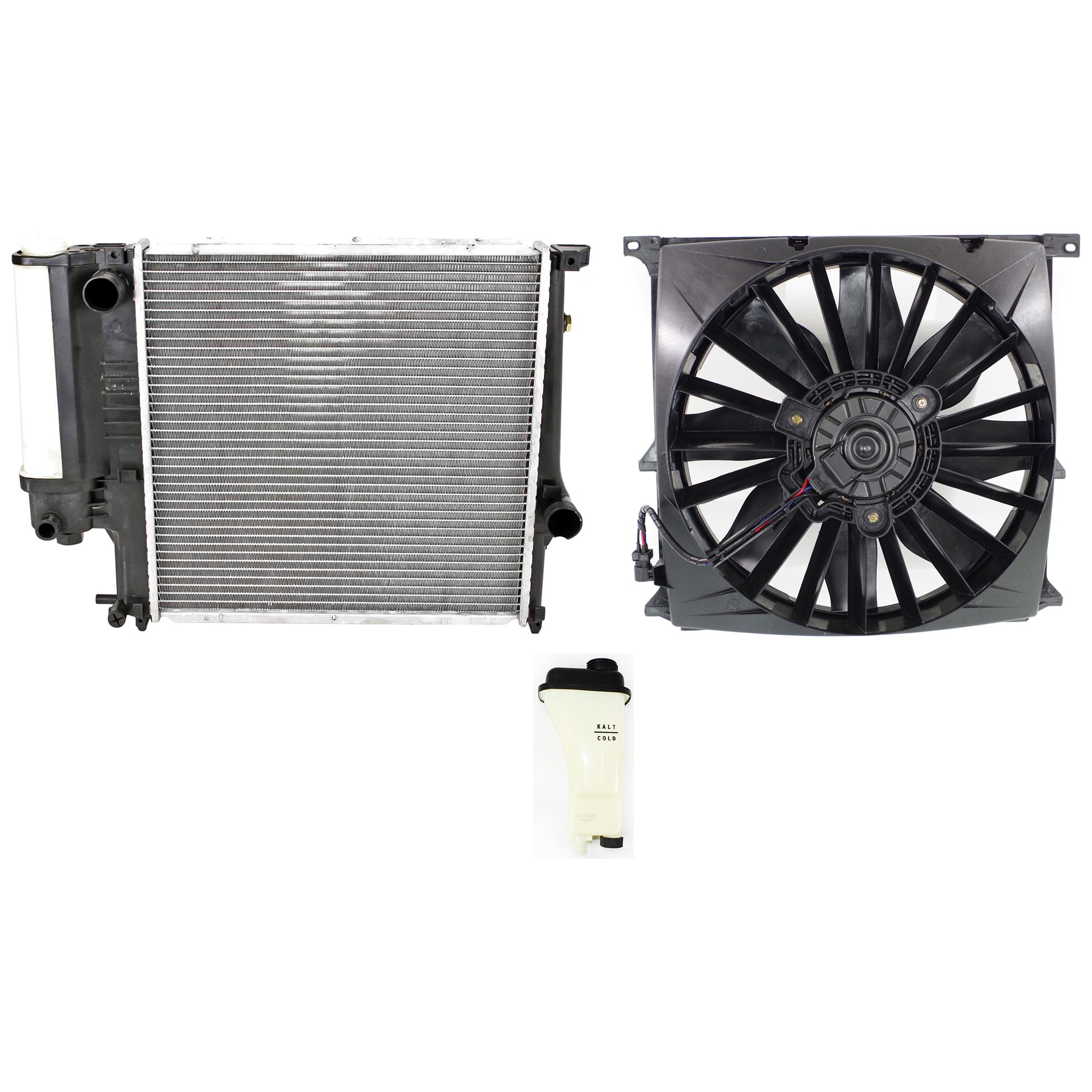 3-Piece Radiator and Fan Kit for BMW 318I (1996-1998), BMW 318IS (1996-1997), 4 Cylinder, 1.9L with Coolant Tank Replacement