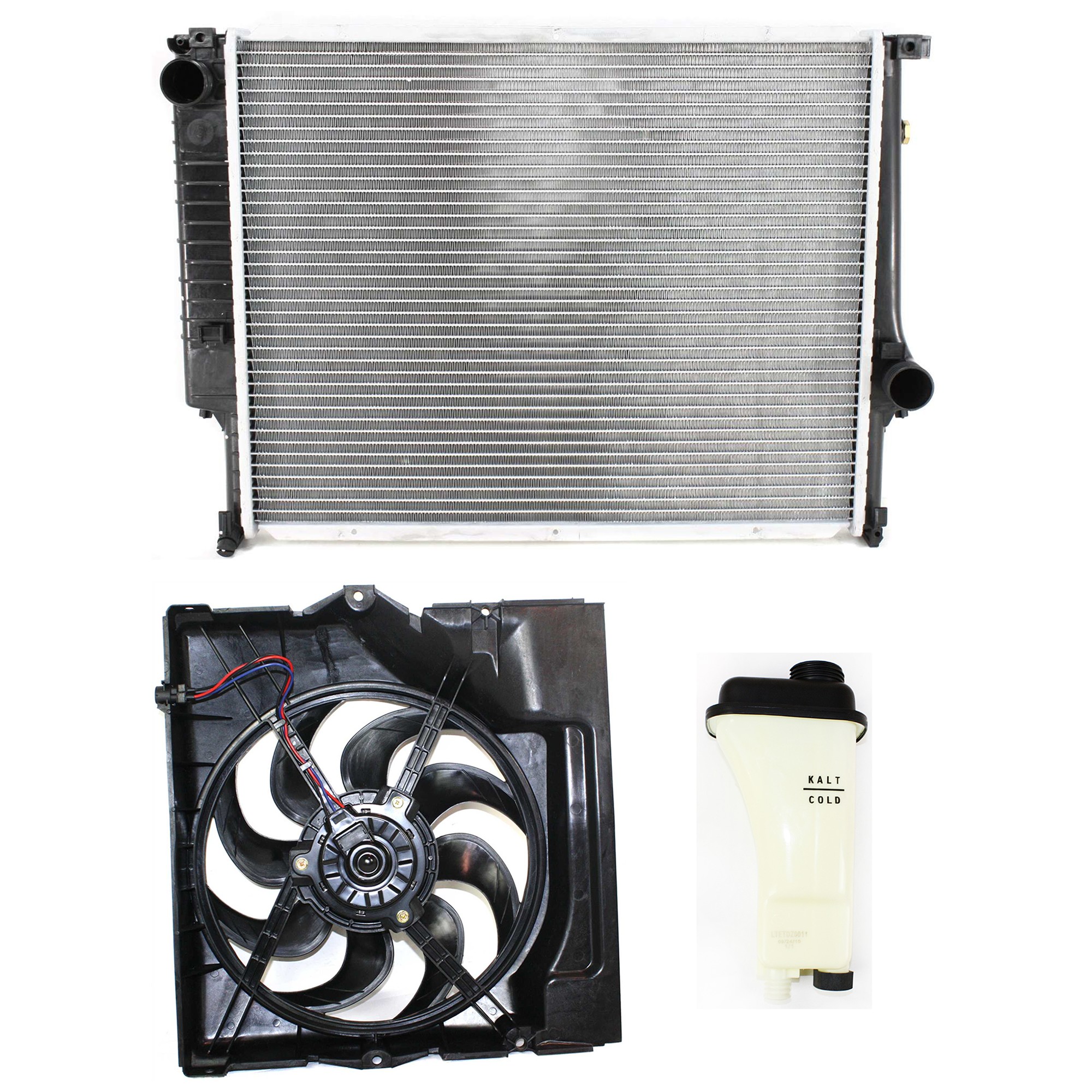 Radiator and Fan Kit for BMW 3-Series 1992-1999, 3-Piece Set with Coolant Tank, Suitable for 6 Cylinder 2.0L/2.5L/2.8L Engine - Replacement [Models: for 318i, 323i, 325i, 328i, M3]