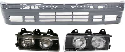 Headlight Assembly Kit for BMW 3-Series 1992-1993, Includes Right (Passenger) and Left (Driver) with Bumper Cover, Halogen, 3-Piece Set, Replacement Models: for 318i, 320i, 325i, 328i.