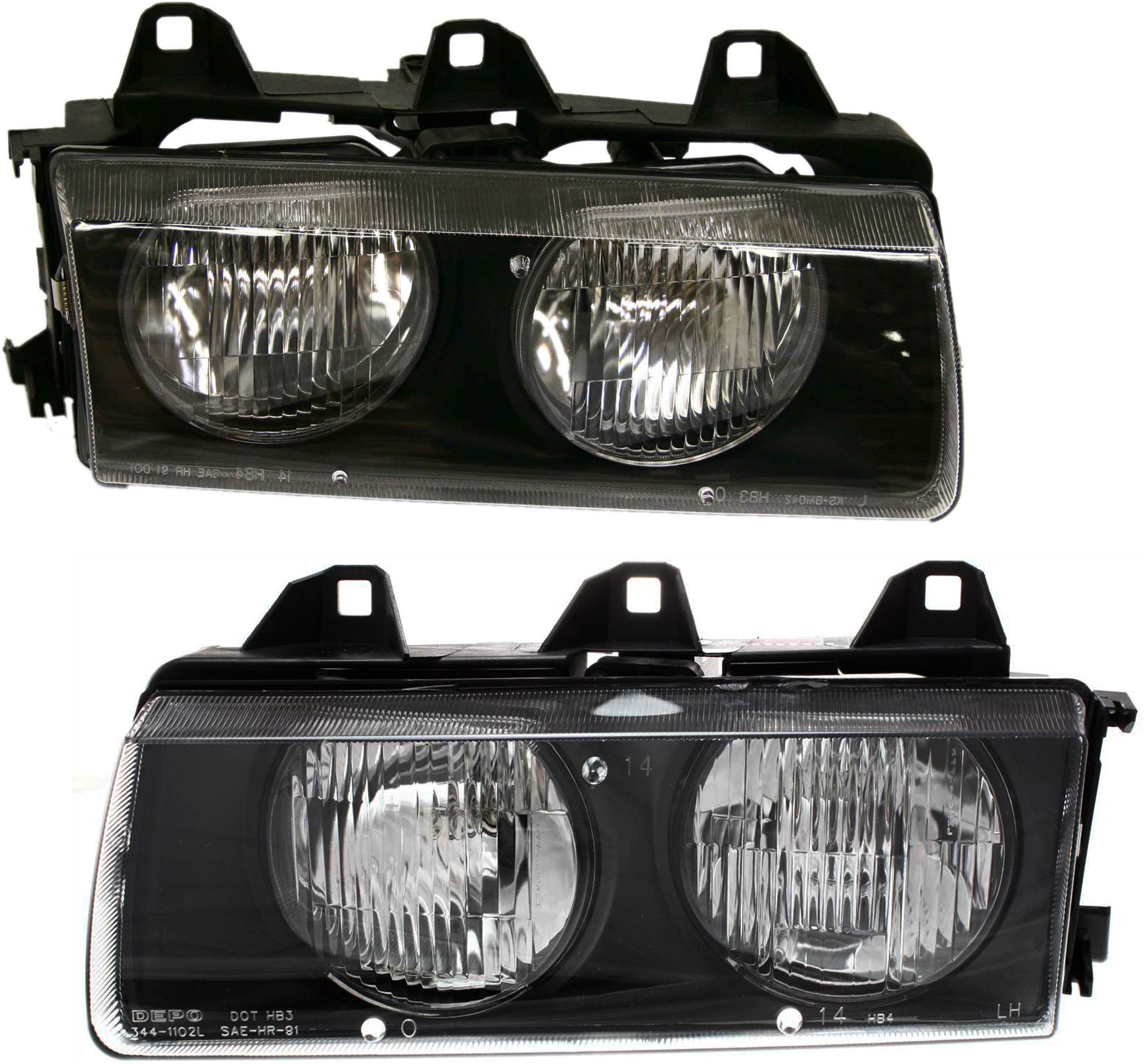 Headlight Assembly for BMW 3-Series (1992-1999), Halogen, Right (Passenger) and Left (Driver), Replacement Pair/Set - Fits 318i, 318is, 318ti, 320i, 323i, 325i, 325is, 328i, M3.