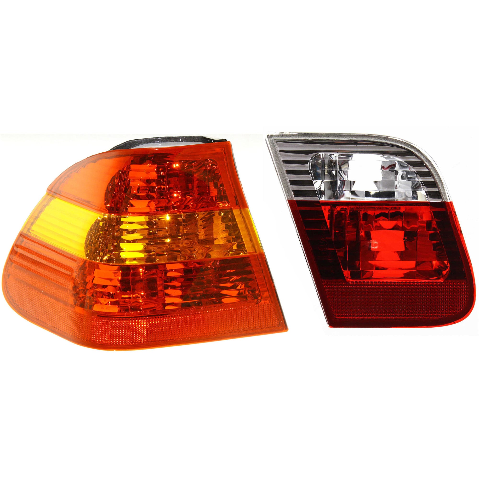 Inner Tail Light Pair/Set for BMW 3-Series Sedan 2002-2005, Clear and Red Lens, Right (Passenger) and Left (Driver), Lens and Housing, Replacement Models: for 320i, 325i, 330i.