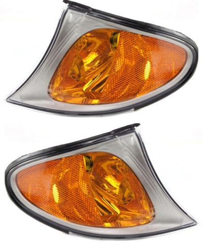 Corner Light Assembly Pair/Set for BMW 3-Series 2002-2005, Right (Passenger) & Left (Driver), Halogen, Sedan/Wagon, with Titanium Surround Trim, Replacement - Fits: 318i, 320i, 325i, 330i.