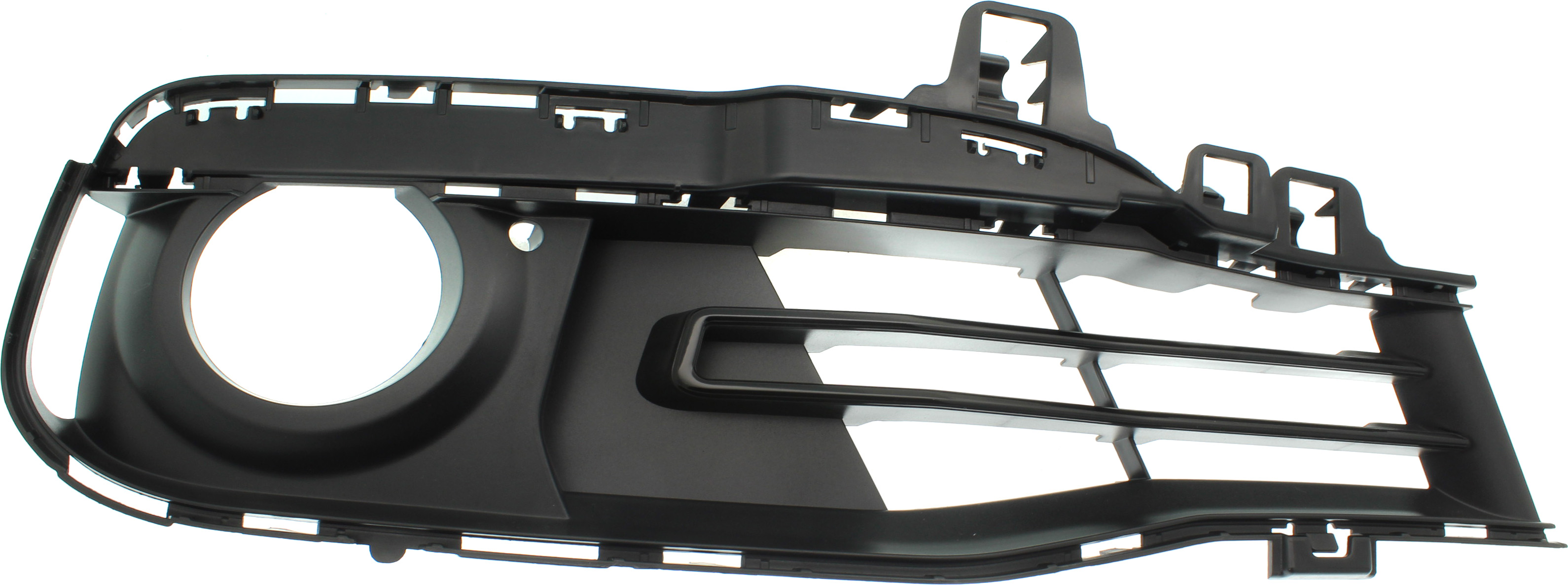 Front Fog Light Molding for BMW 3-Series 2016-2019, Right (Passenger), Textured Black, Without Chrome Bezel, Plastic, Sport Line without M Sport Package, Sedan/Wagon, Replacement. Models: 316i, 318i, 320i, 323i, 325i, 328i, 330i, 335i, 340i.
