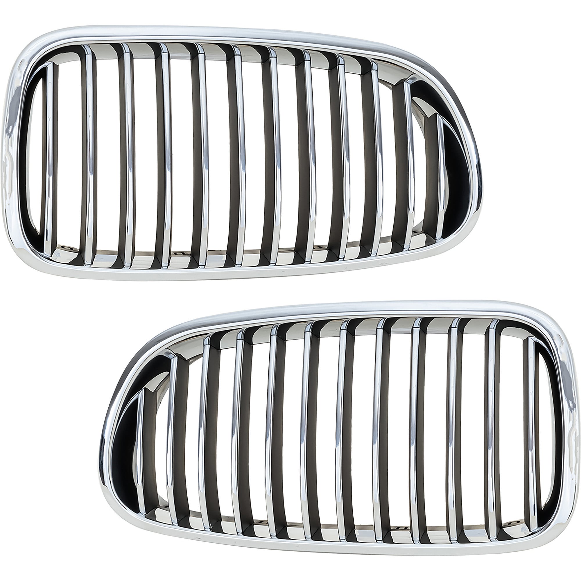 Grille Pair/Set for BMW 5-Series (2011-2013), Right (Passenger) and Left (Driver), Chrome Shell with Black Insert, without Night Vision, Sedan - Replacement