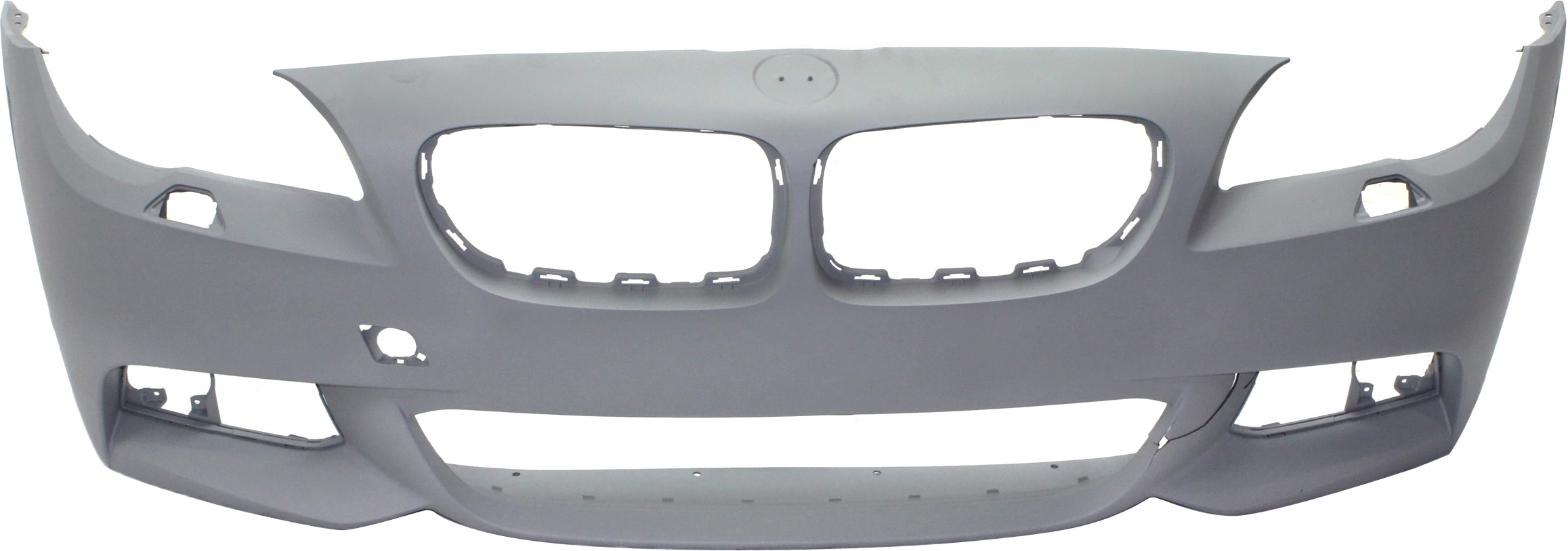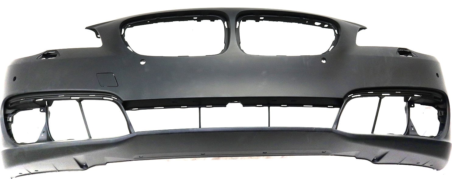 Front Bumper Cover for BMW 5-Series 2014-2016 Sedan, Primed (Ready to Paint), with M Package, without Park Distance Control Sensor Holes, Replacement Models: 528i, 535i, 550i.