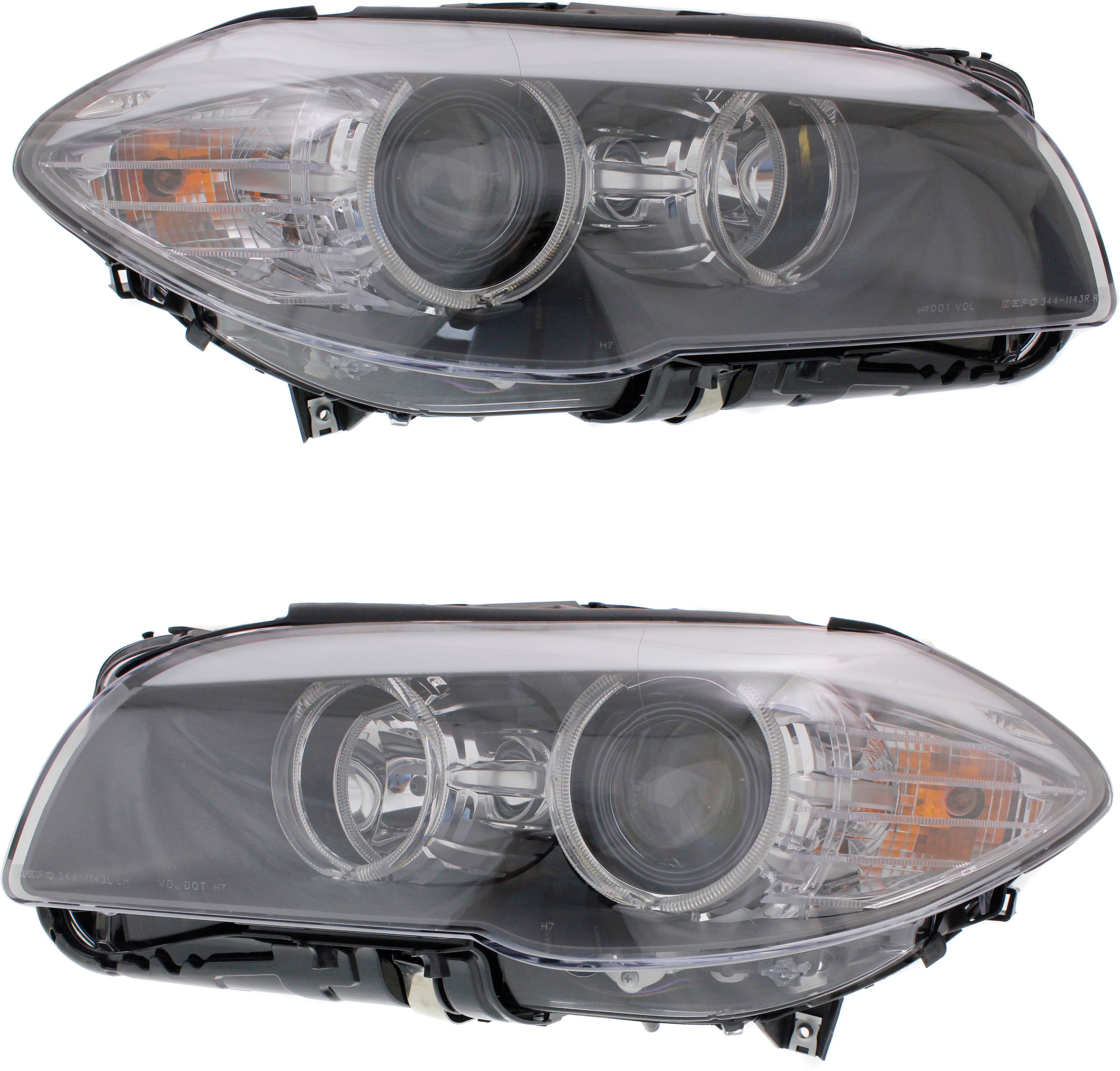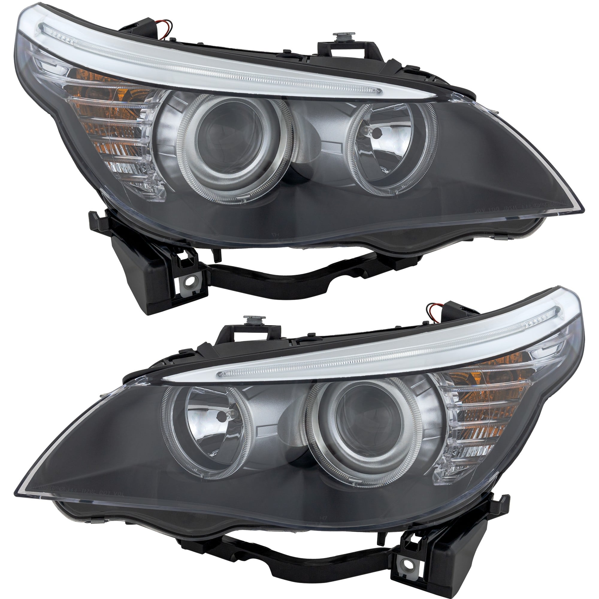 Headlight Assembly Pair/Set for BMW 5-Series Sedan/Wagon (2008-2010), Halogen, Right (Passenger) and Left (Driver), Replacement - Fits: 520i, 523i, 525i, 528i, 530i, 535i, 540i, 550i, M5.