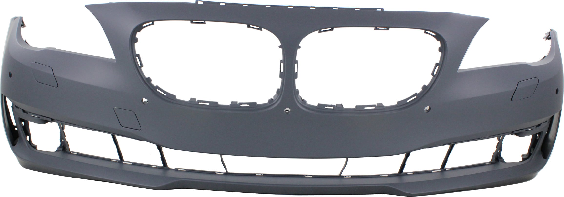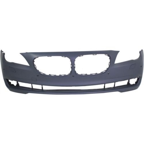 Front Bumper Cover for BMW 7-Series (2009-2012), Primed (Ready to Paint), Without M Package, With Parking Distance Control Sensor Holes, With Side View Camera, Replacement