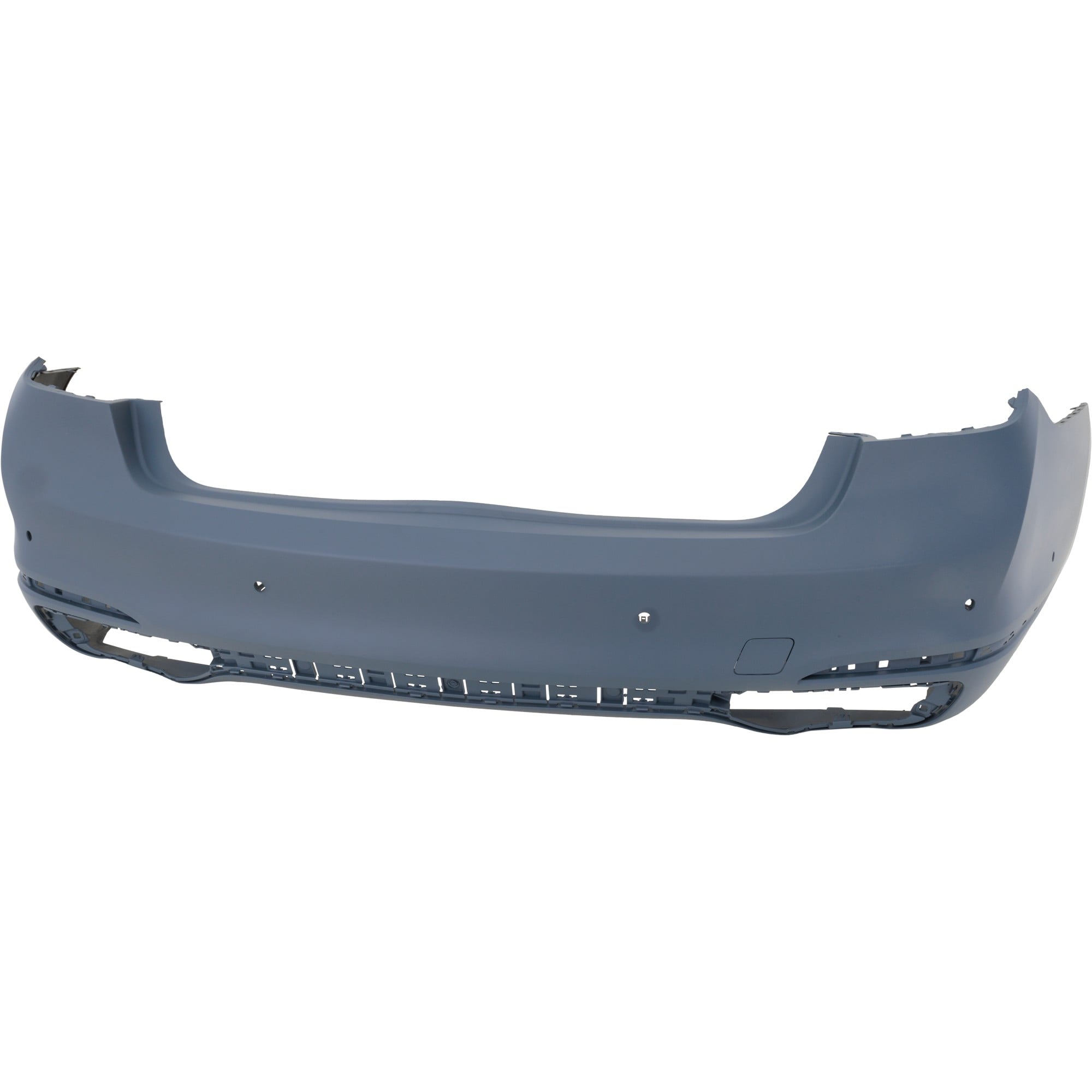 It includes holes for parking assist sensors.