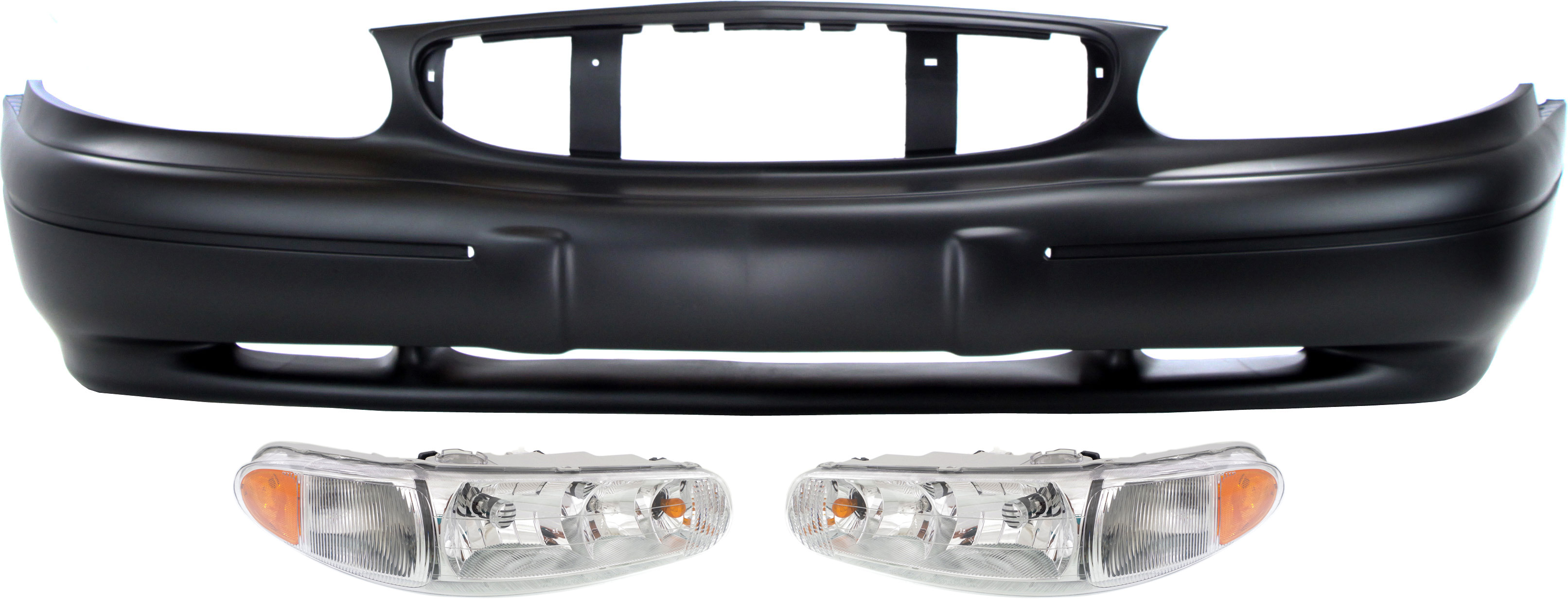 Headlight Kit for Buick Regal 1997-2004, Right (Passenger) and Left (Driver), Includes Bulbs and Bumper Cover, 3-Piece Replacement