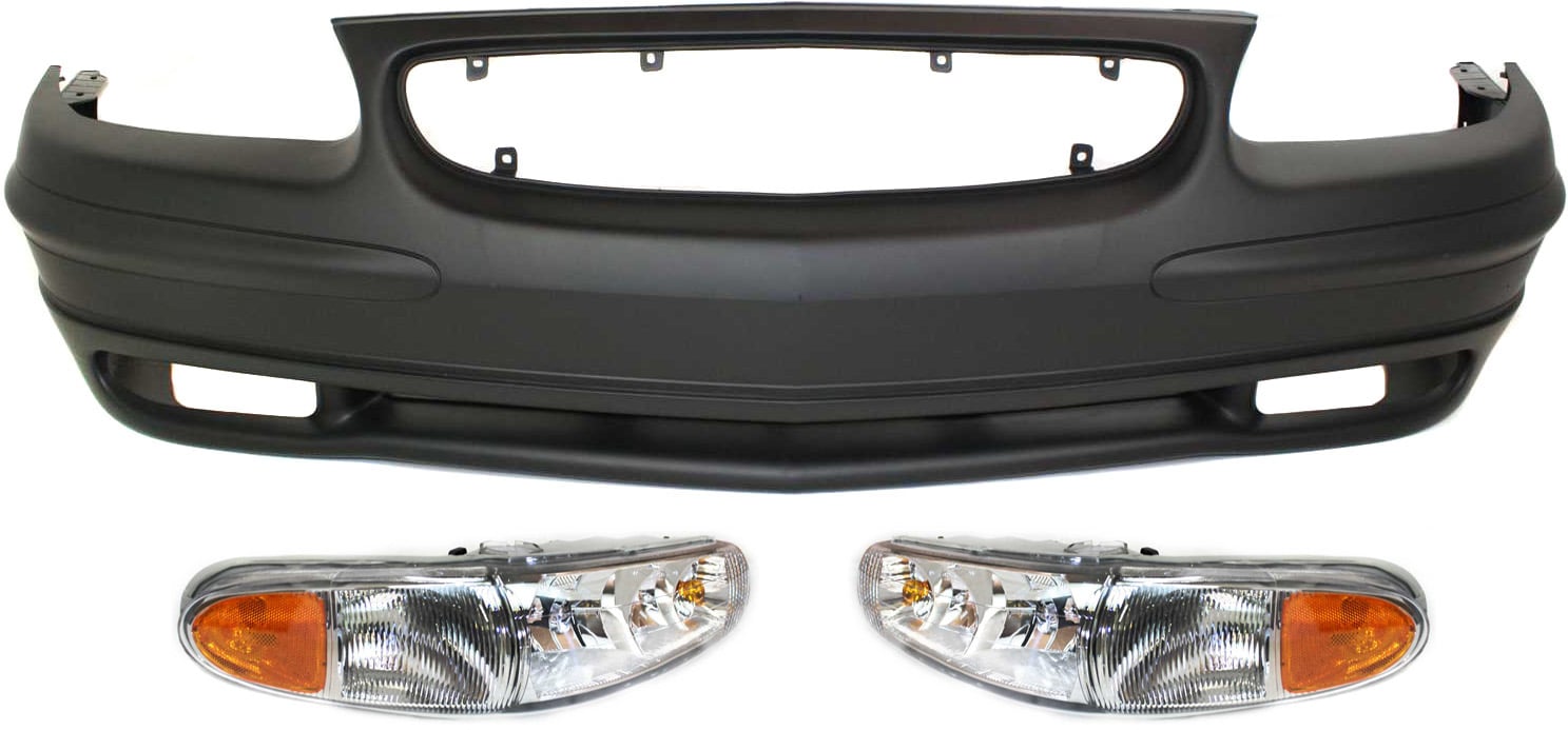Headlight Assembly for Buick Century 1997-2003, Right (Passenger) and Left (Driver), Halogen, 3-Piece Kit with Bumper Cover, Replacement
