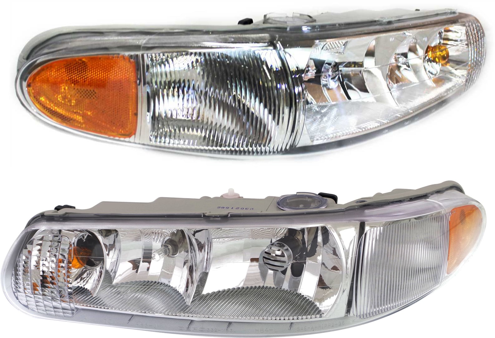 Headlight Assembly for Buick Century 1997-2005, Regal 1997-2004: Right (Passenger) and Left (Driver), Halogen, with Corner Light Bulb, Complete Replacement Pair/Set