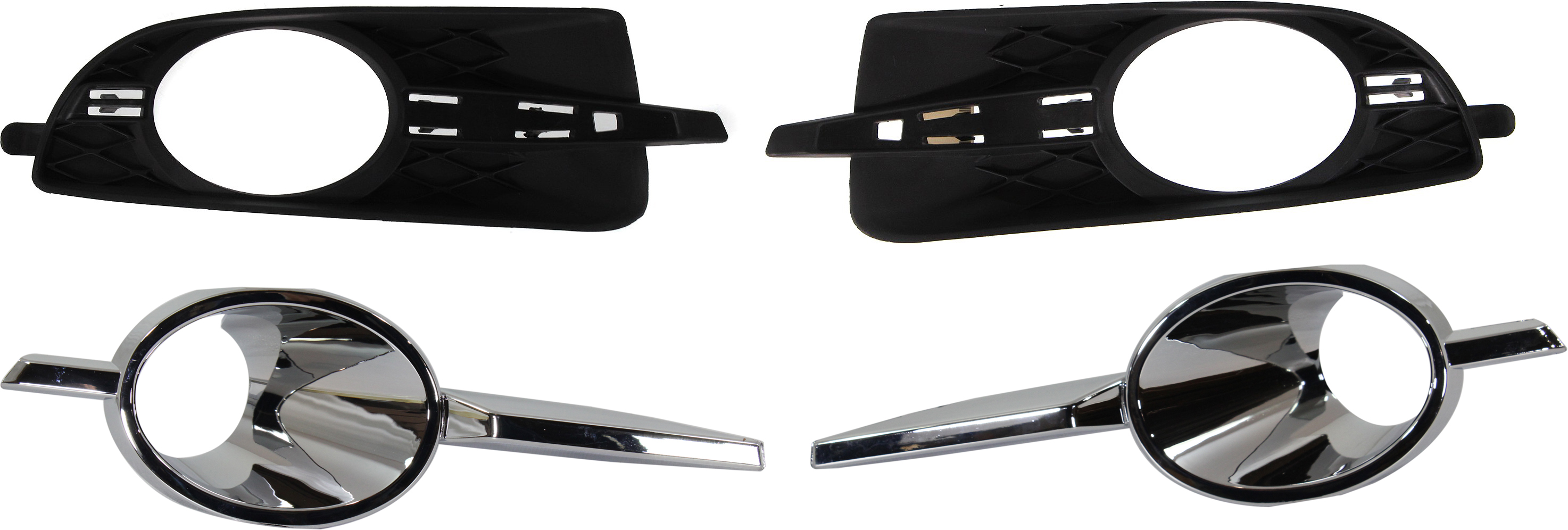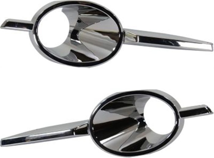 This is a pair/set of Front Fog Lamp Moldings for the Right (Passenger) and Left (Driver) sides. They have a Chrome finish. This part excludes the CX and Touring Models.
