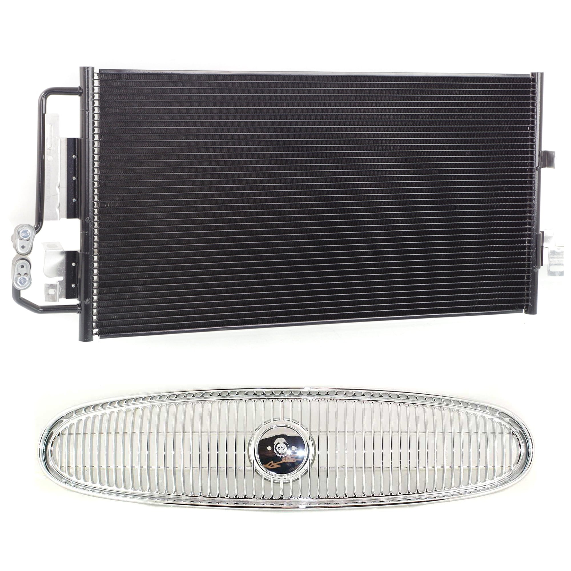 Grille for Buick Lesabre 2000-2005, 2-Piece Kit, Chrome Shell and Insert, with Air Conditioning Condenser, Replacement