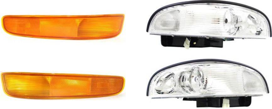 Headlight Assembly for 1997-2005 Buick Park Avenue, Right (Passenger) and Left (Driver), Halogen, 4-Piece kit with Parking Lights, Replacement