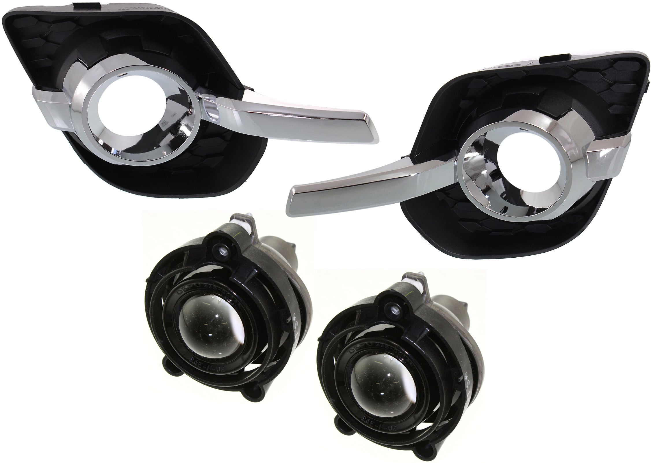 Fog Light Assembly for Buick Camaro 2012-2015, includes Right (Passenger) & Left (Driver) Lights, 4-Piece kit, Halogen, with Fog Light Trim, Replacement