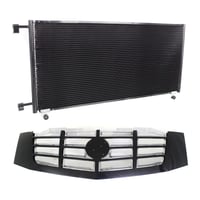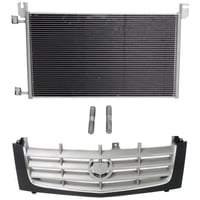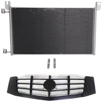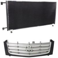 Grille Kit for 2002-2006 Cadillac Escalade/2003-2006 Escalade ESV, 2-Piece Paintable Shell and Cross Bar Insert, Chrome Insert Opening Molding, Plastic, with Air Conditioning Condenser Replacement