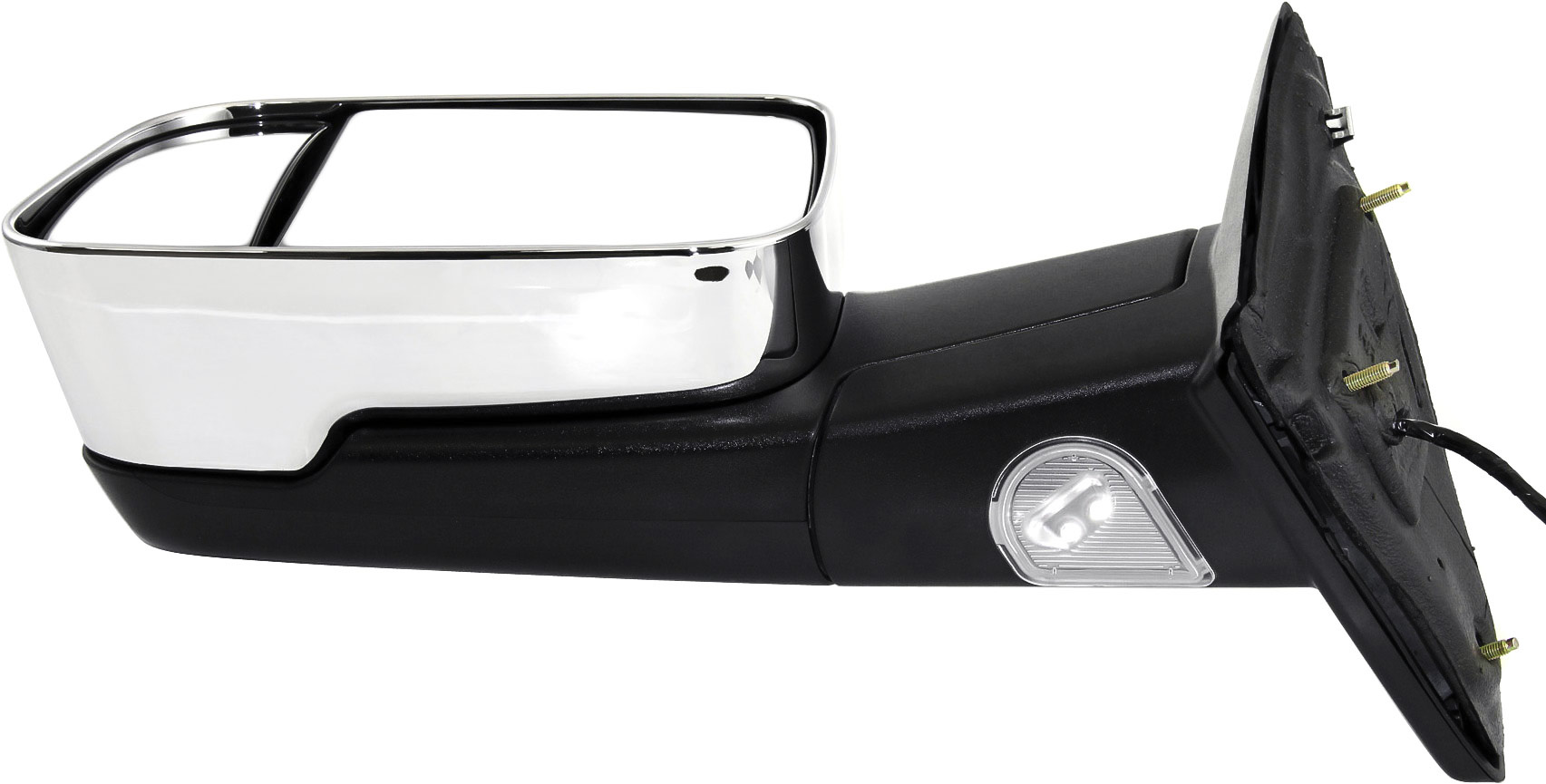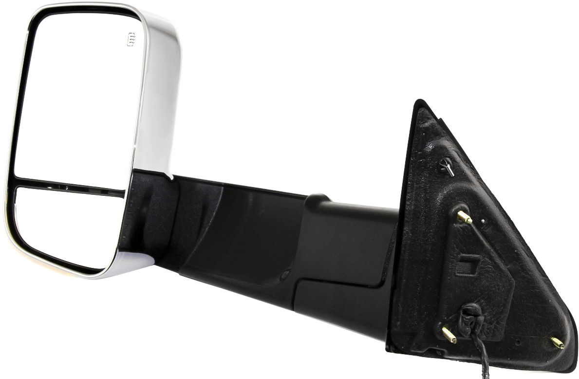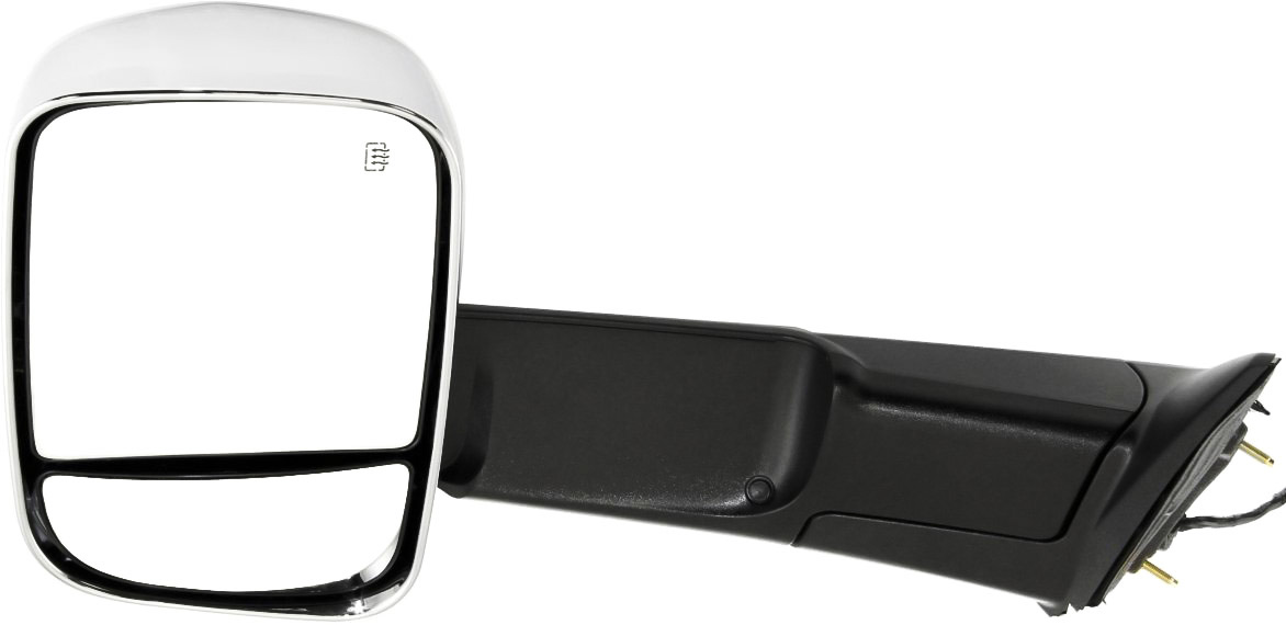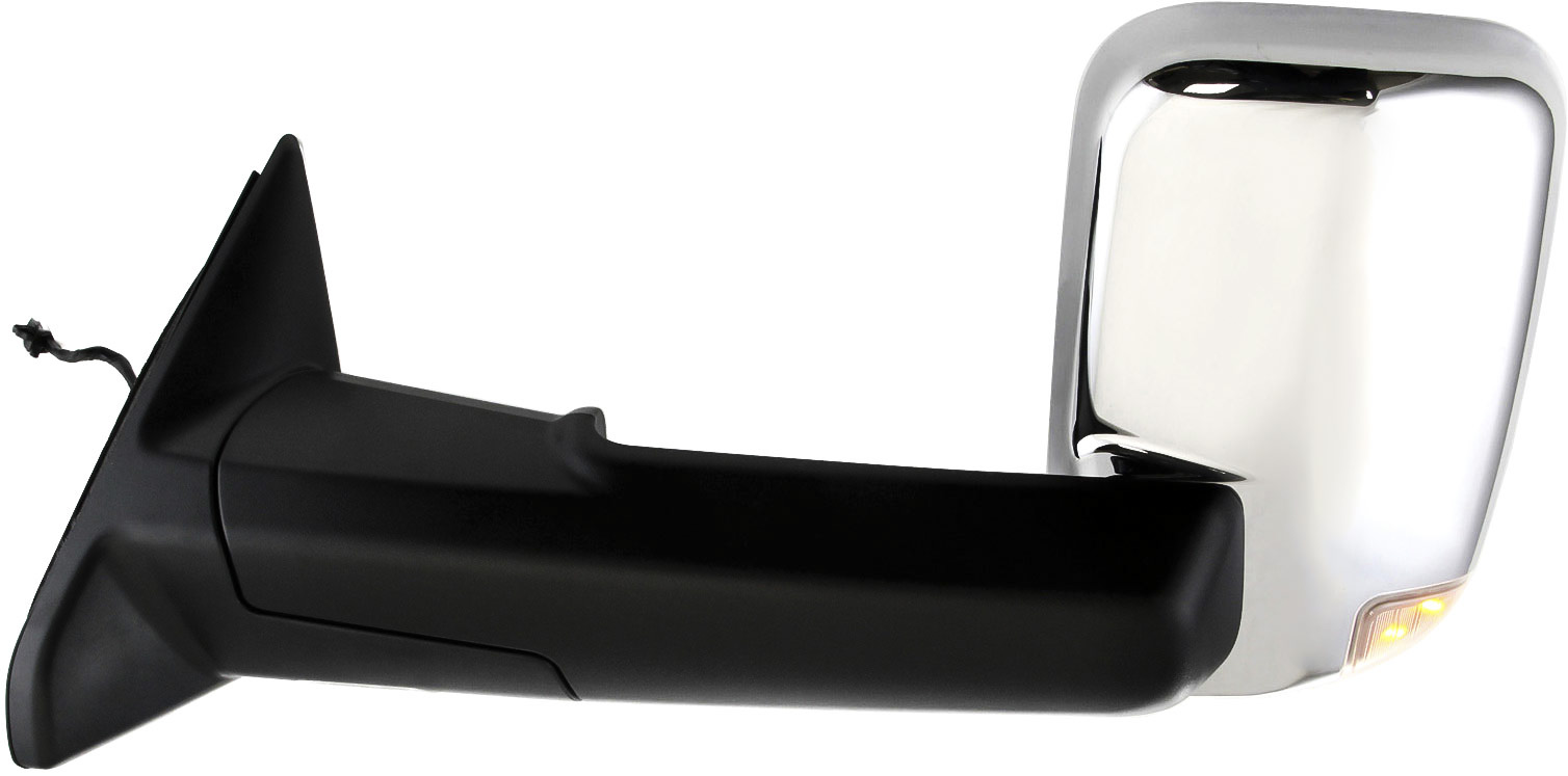 Fits Years: 2010 Towing Mirror Left (Driver) for Dodge Full Size Pickup 2010-2010 / Ram Full Size Pickup 2011-2011, Power, Manual Folding, Heated, Chrome, without Auto-Dimming, Blind Spot Detection, in-Housing Signal Light, with Memory, Replacement