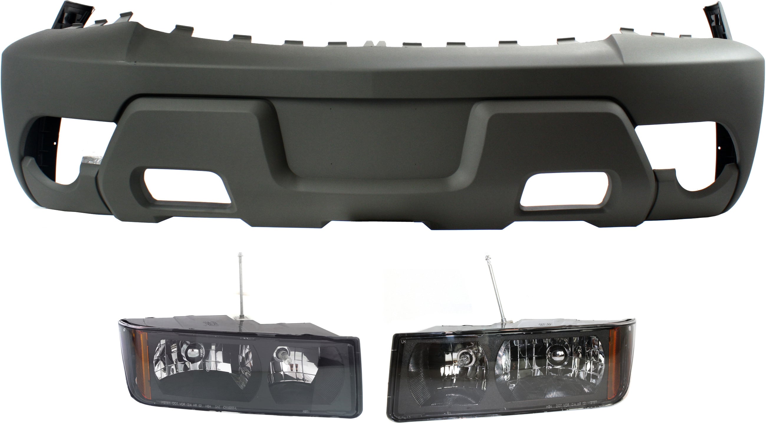 Front Bumper Cover for 2002 Chevrolet Avalanche 1500, 3-Piece Kit with Headlights, Fits Models with Body Cladding Replacement