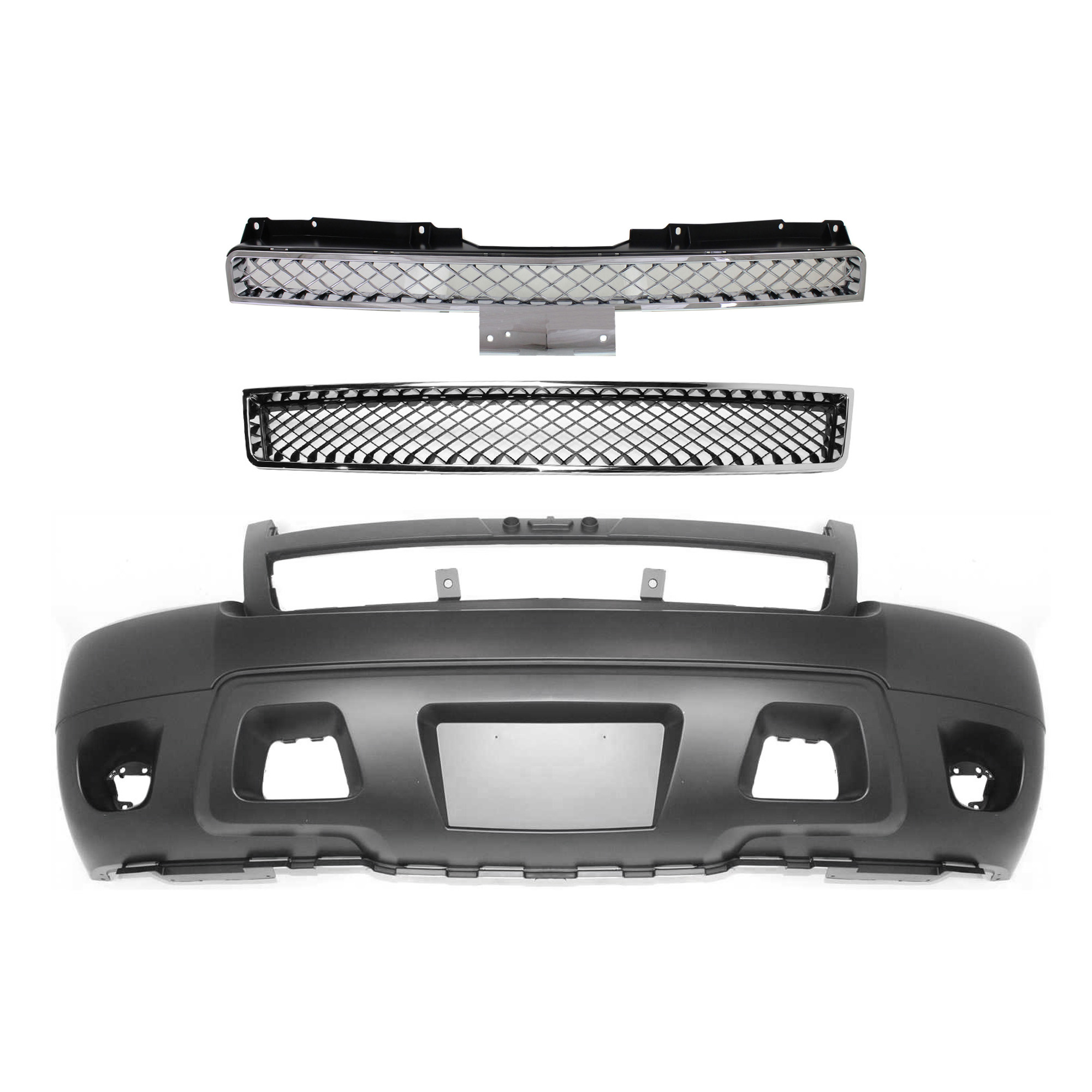 Front Bumper Cover for Chevrolet Suburban 1500 / Tahoe, 2007-2014, 3-Piece Kit with Bumper Grille and Grille, Replacement