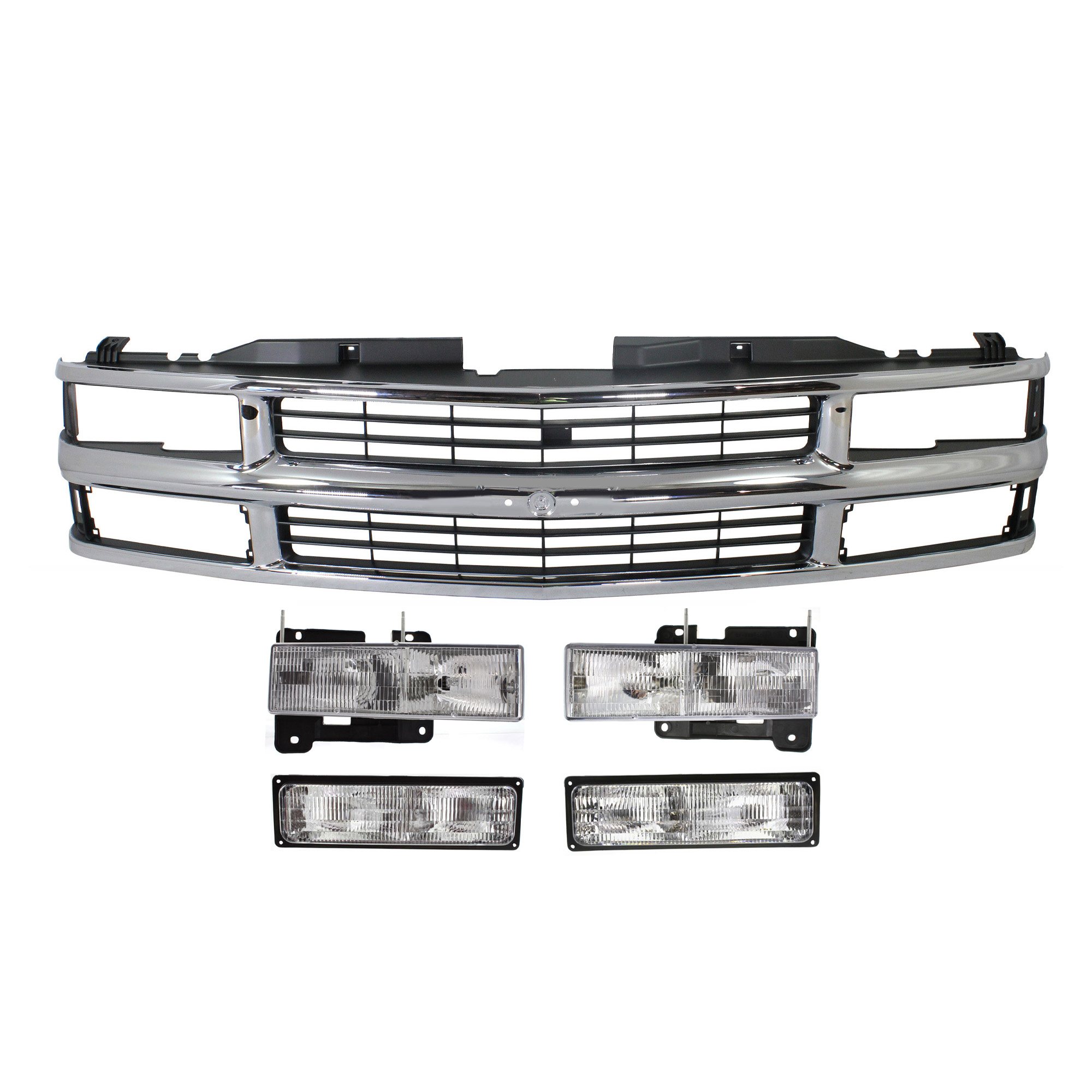 5-Piece Grille Kit for 1994-2000 Chevrolet C/K Full Size Pick-Up, Includes Headlights and Turn Signal Lights, Replacement