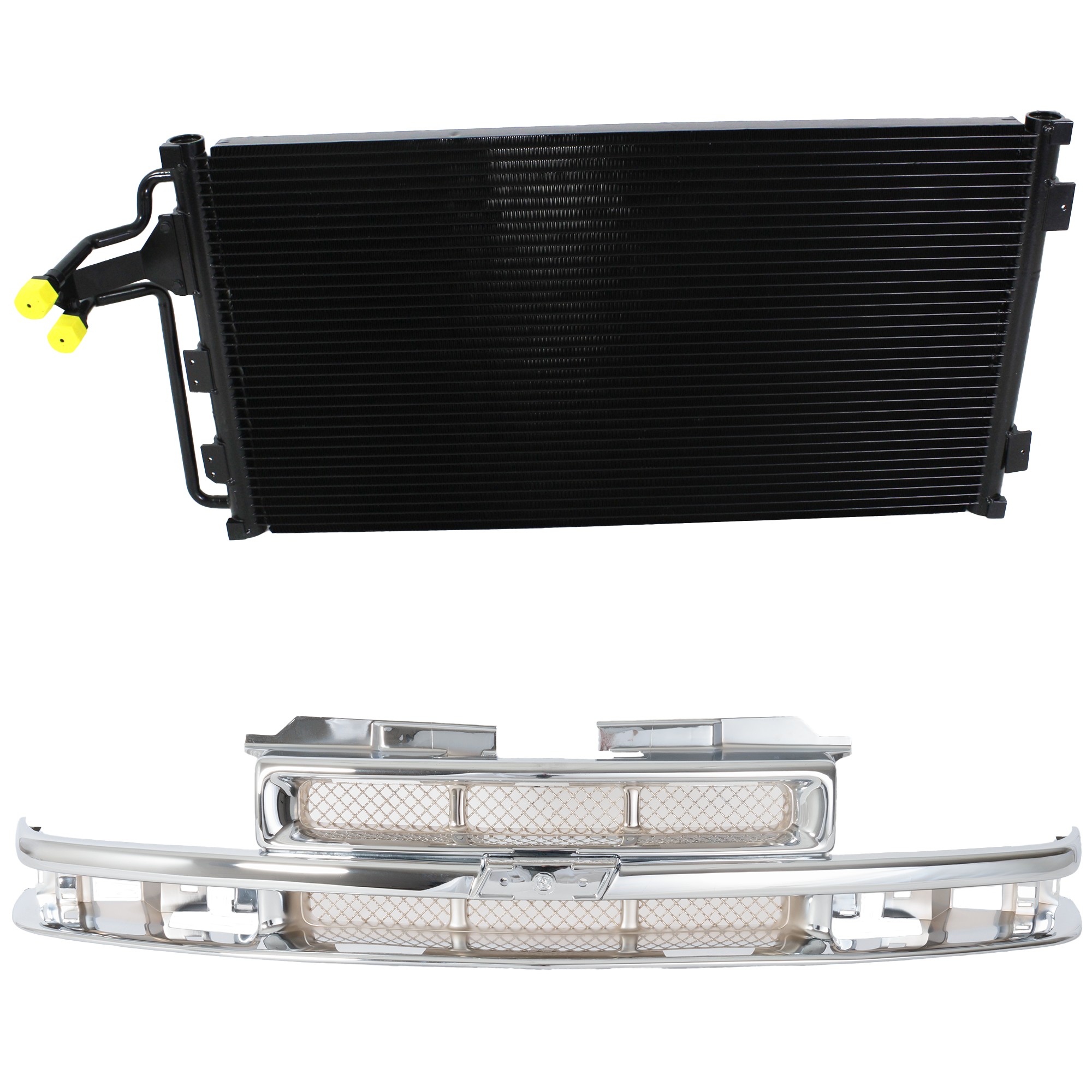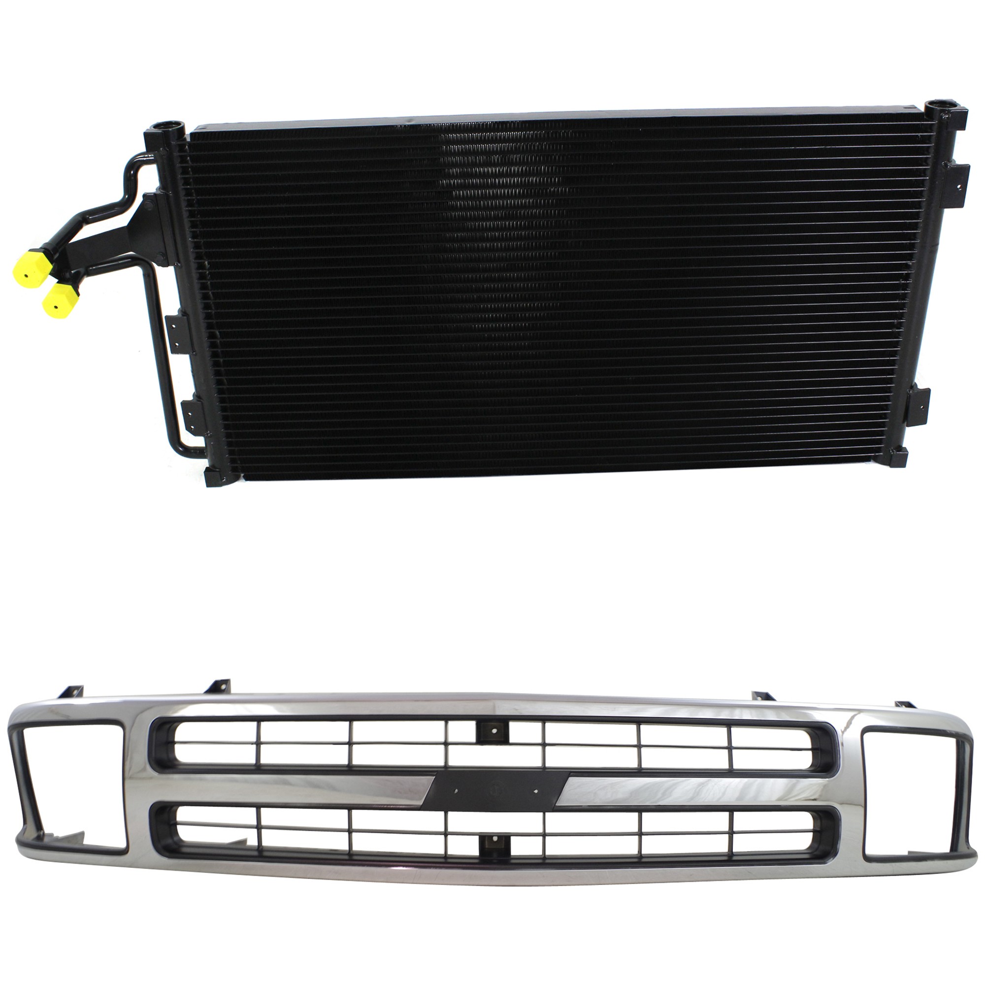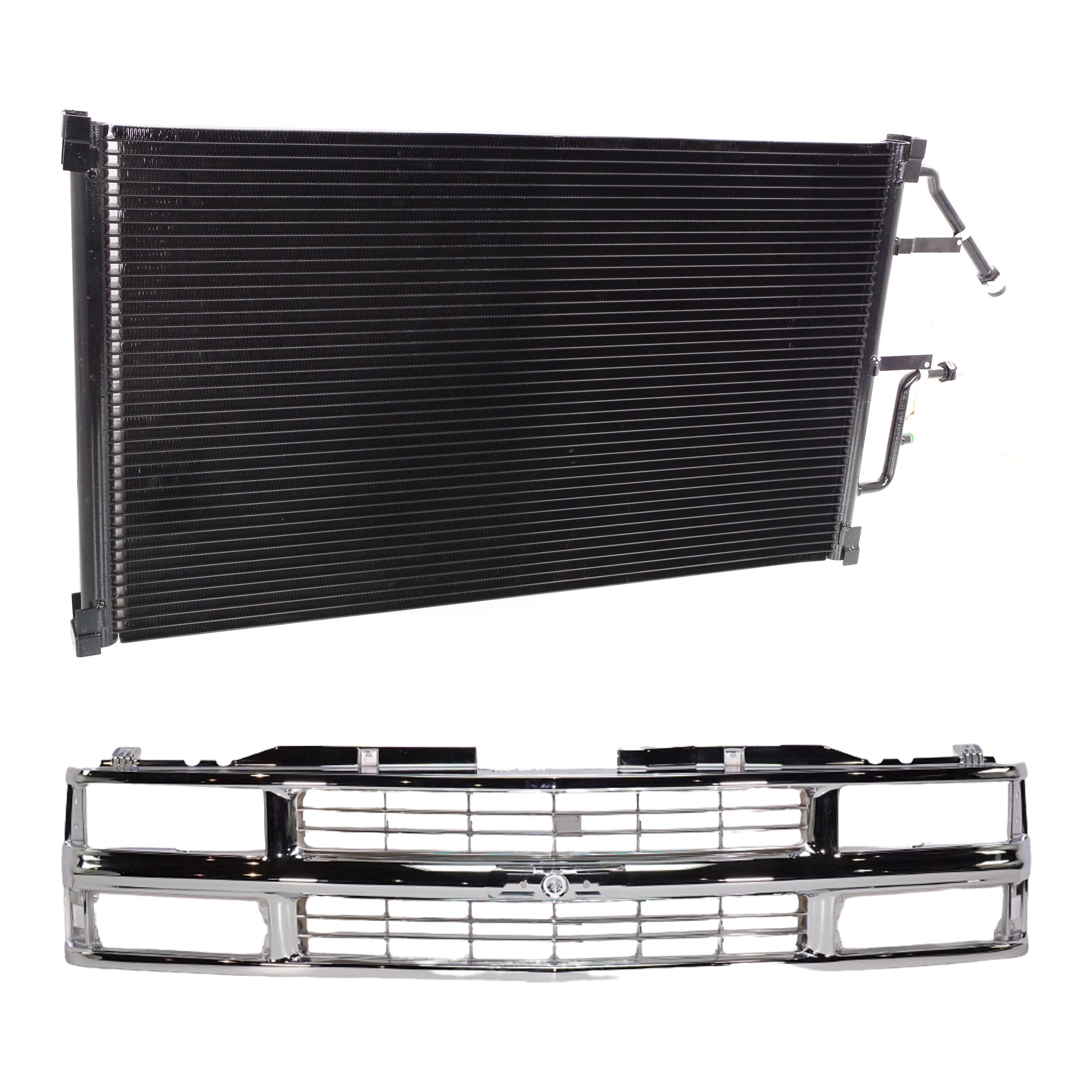 2-Piece Grille Kit for 1994-2000 Chevrolet C2500/C3500/K2500, Chrome Shell and Insert, Cross Bar, with Air Conditioning Condenser Replacement