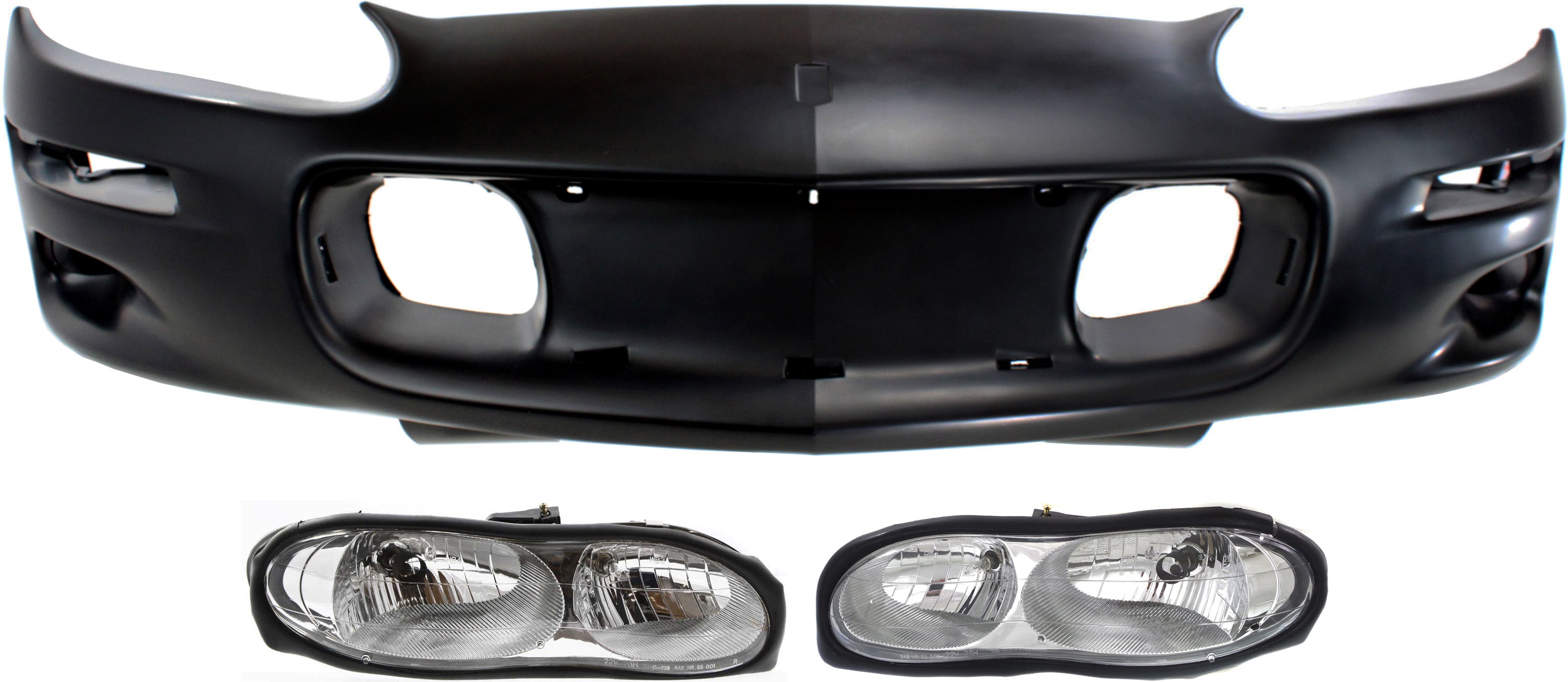 Headlight Assembly for Chevrolet Camaro 1998-2002, Right (Passenger) and Left (Driver), Halogen, 3-Piece Kit with Bumper Cover, Replacement