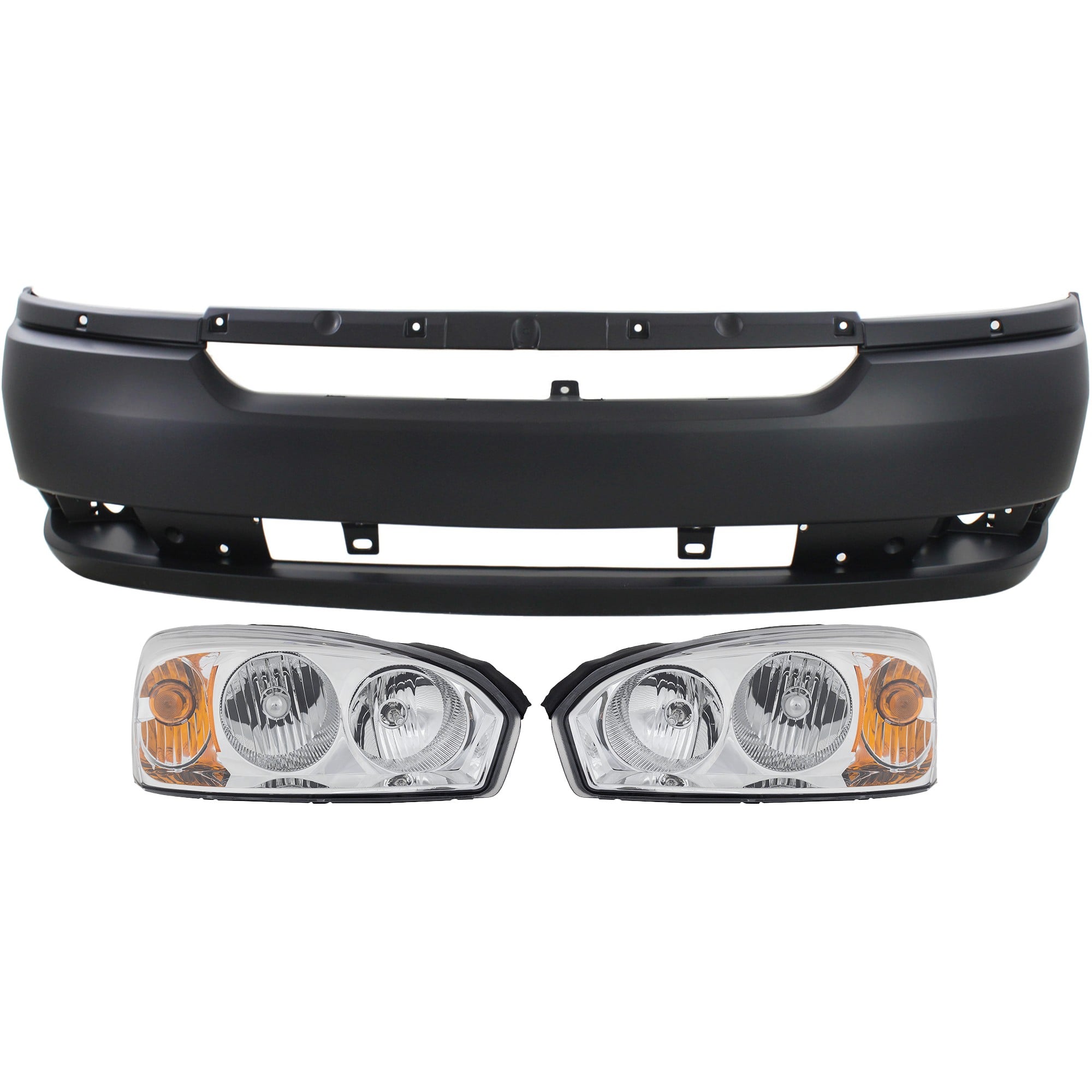 Headlight Assembly for 2004-2005 Chevrolet Malibu, Right (Passenger) and Left (Driver), Halogen, 3-Piece Kit with Bumper Cover, Replacement