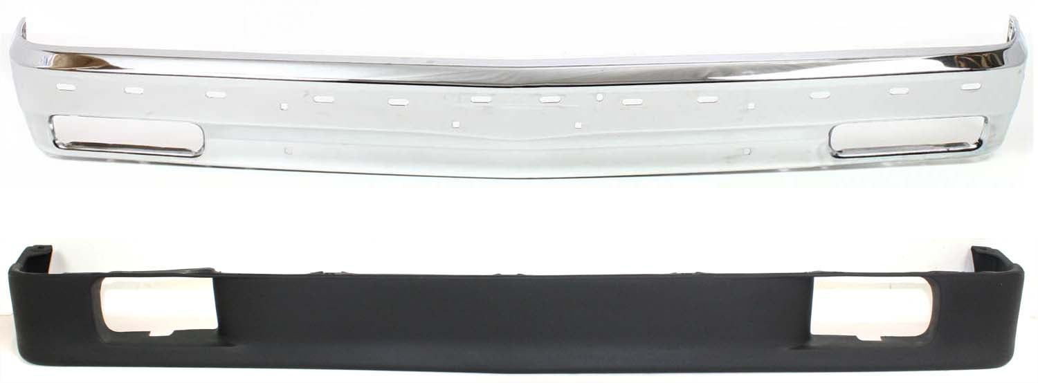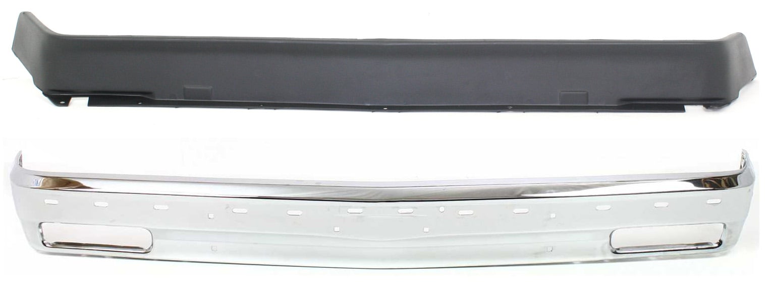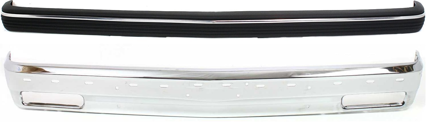 Front Bumper for Chevrolet S10 Pickup (1991-1993) / S10 Blazer (1991-1992), Chrome, 2-Piece Kit with Bumper Trim, Replacement