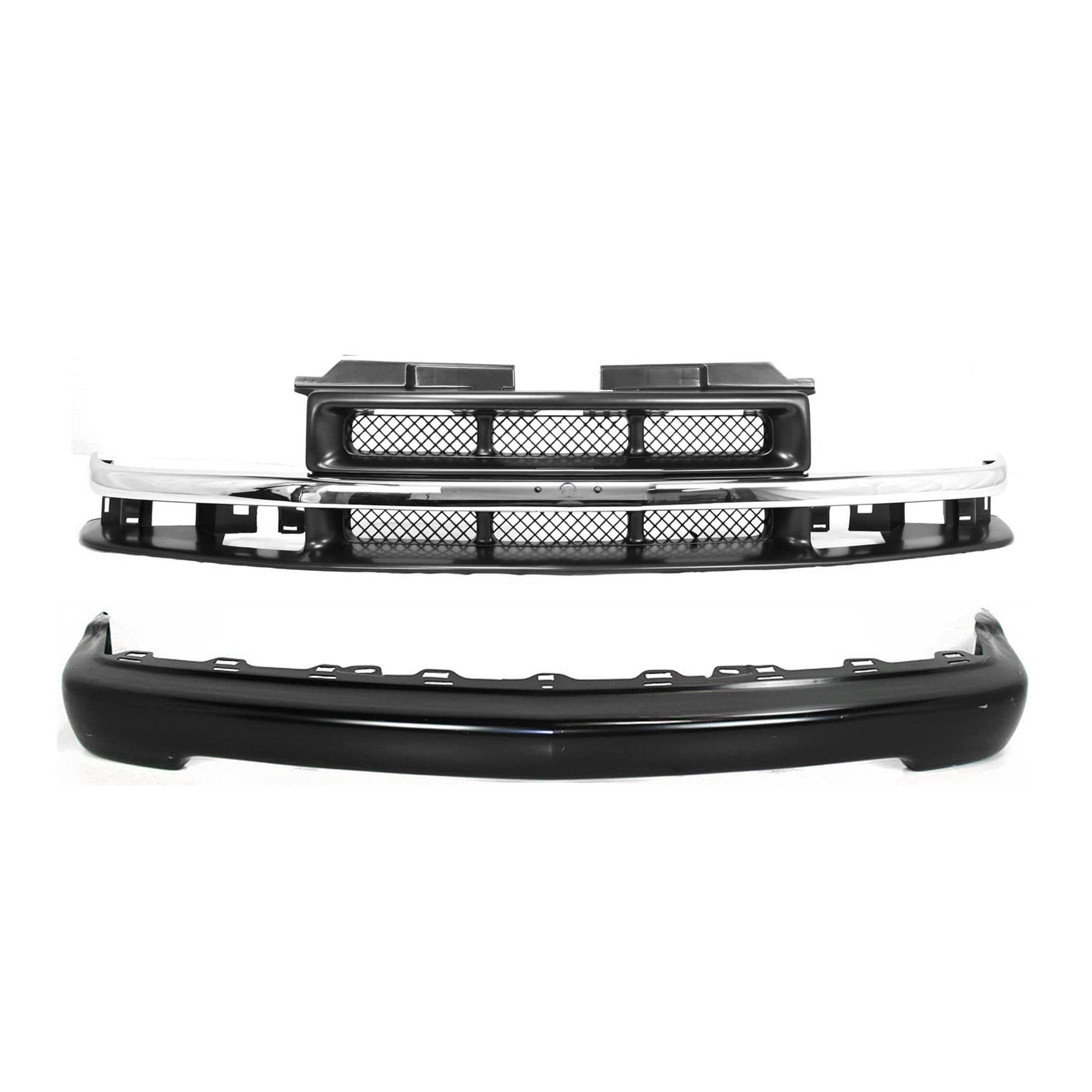 Front Bumper and Grille Kit for Chevrolet Blazer 1998-2005, S10 1998-2004, 2-Piece Replacement Set