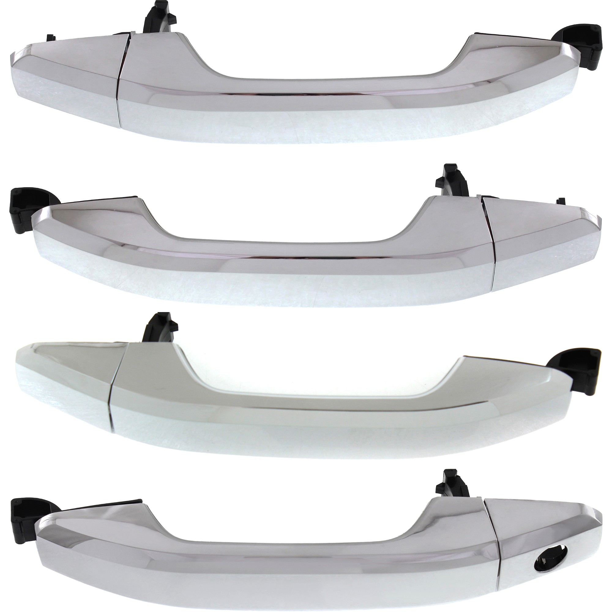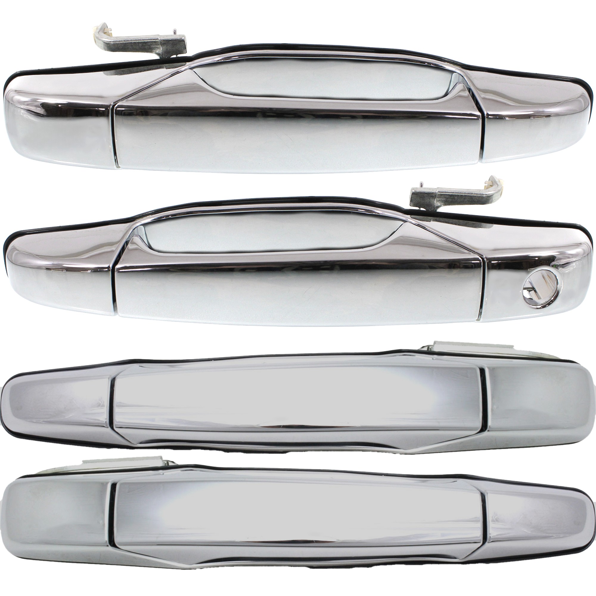 Chrome Exterior Door Handle Pair/Set for 2007-2014 Cadillac Sierra/Silverado - Front Right (Passenger) and Left (Driver) with Key Hole, Rear Right (Passenger) and Left (Driver) without Key Hole, Excludes 2007 Classic, Replacement