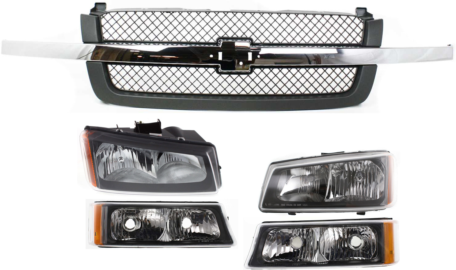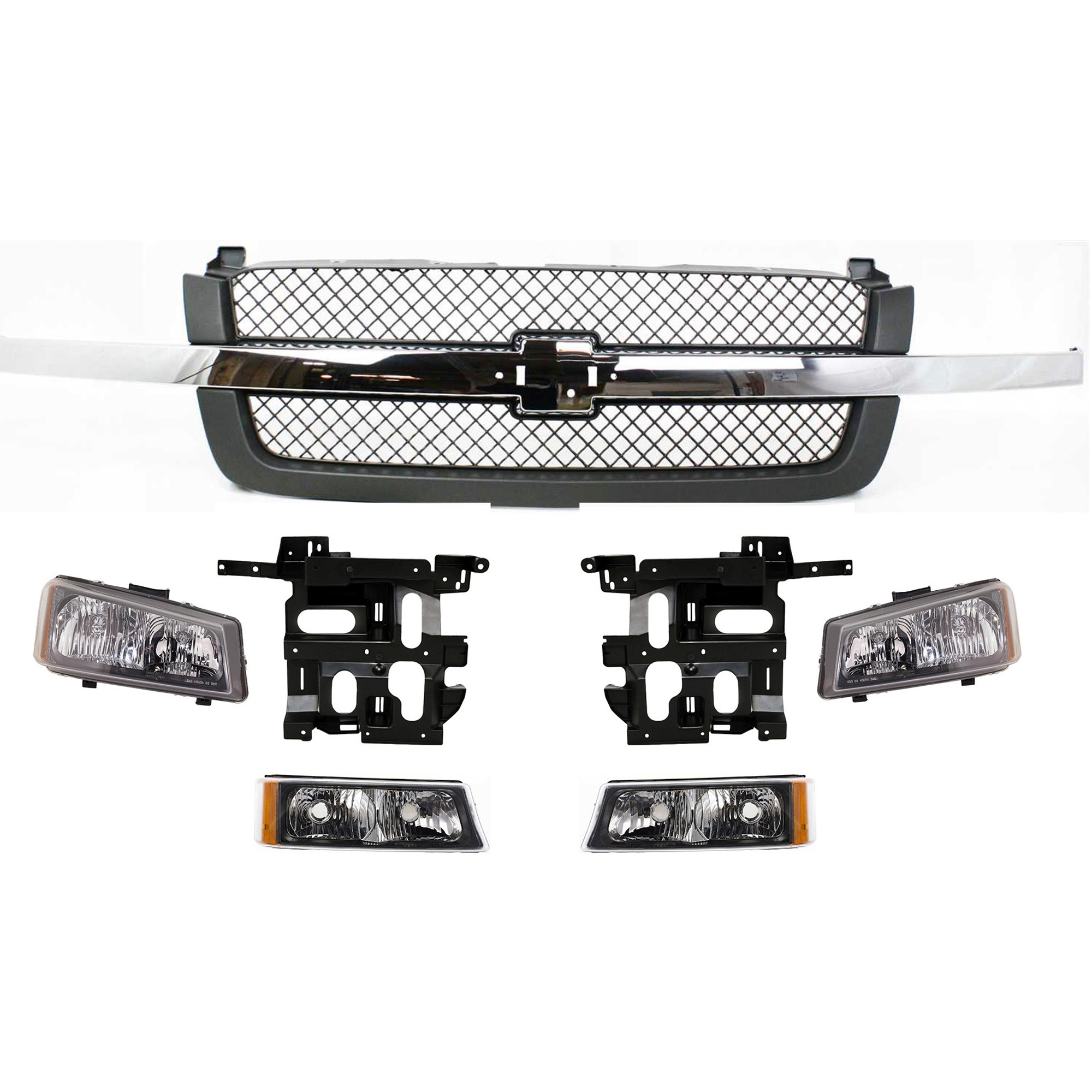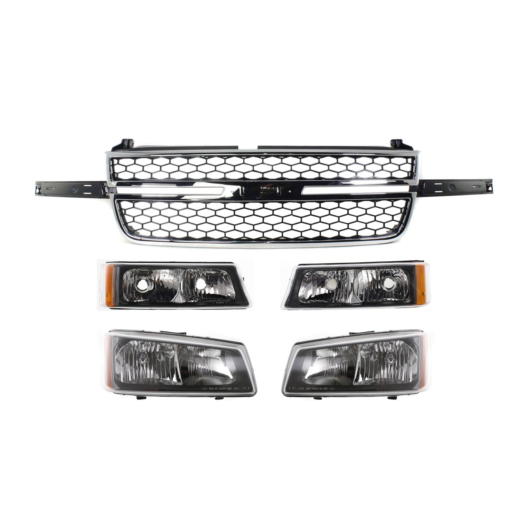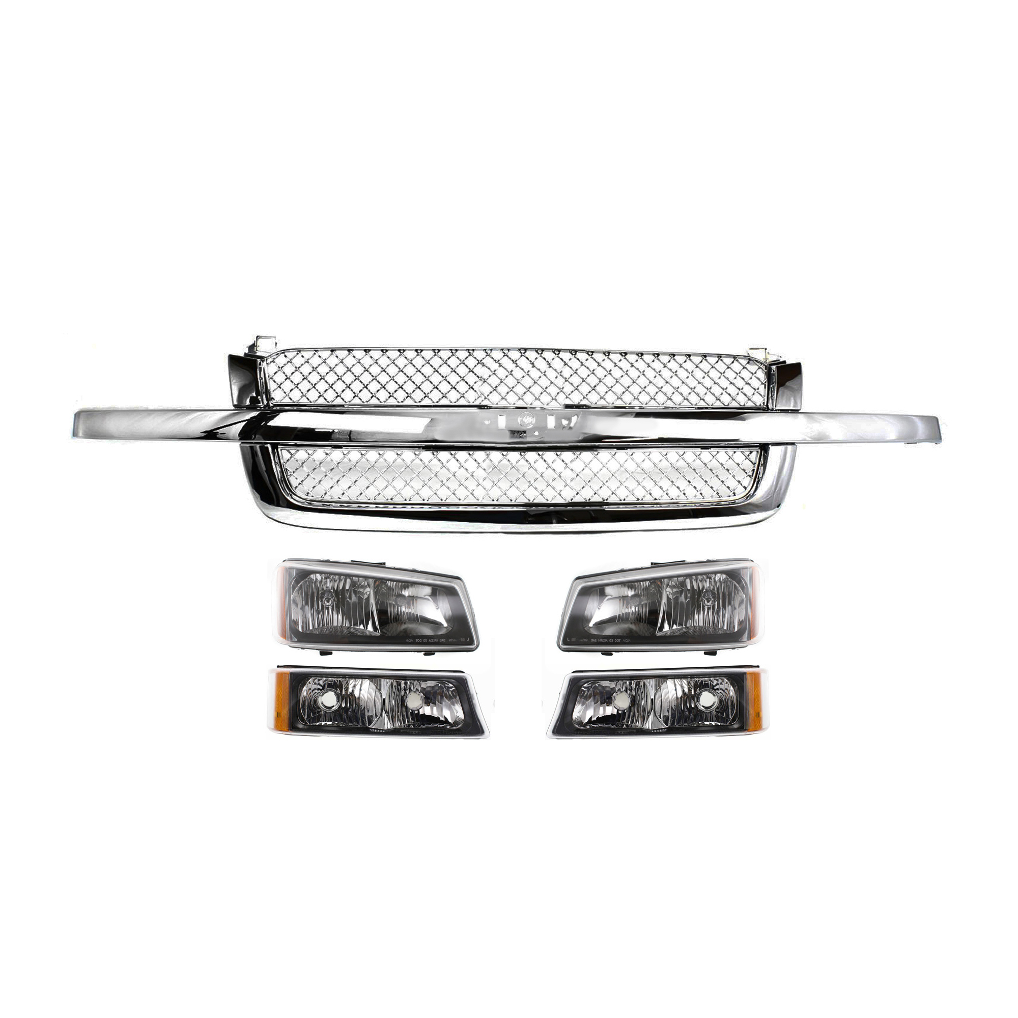 Grille Kit for Chevrolet Silverado 2003-2007, 5-Piece Set, Includes Headlights and Turn Signal Lights, Replacement