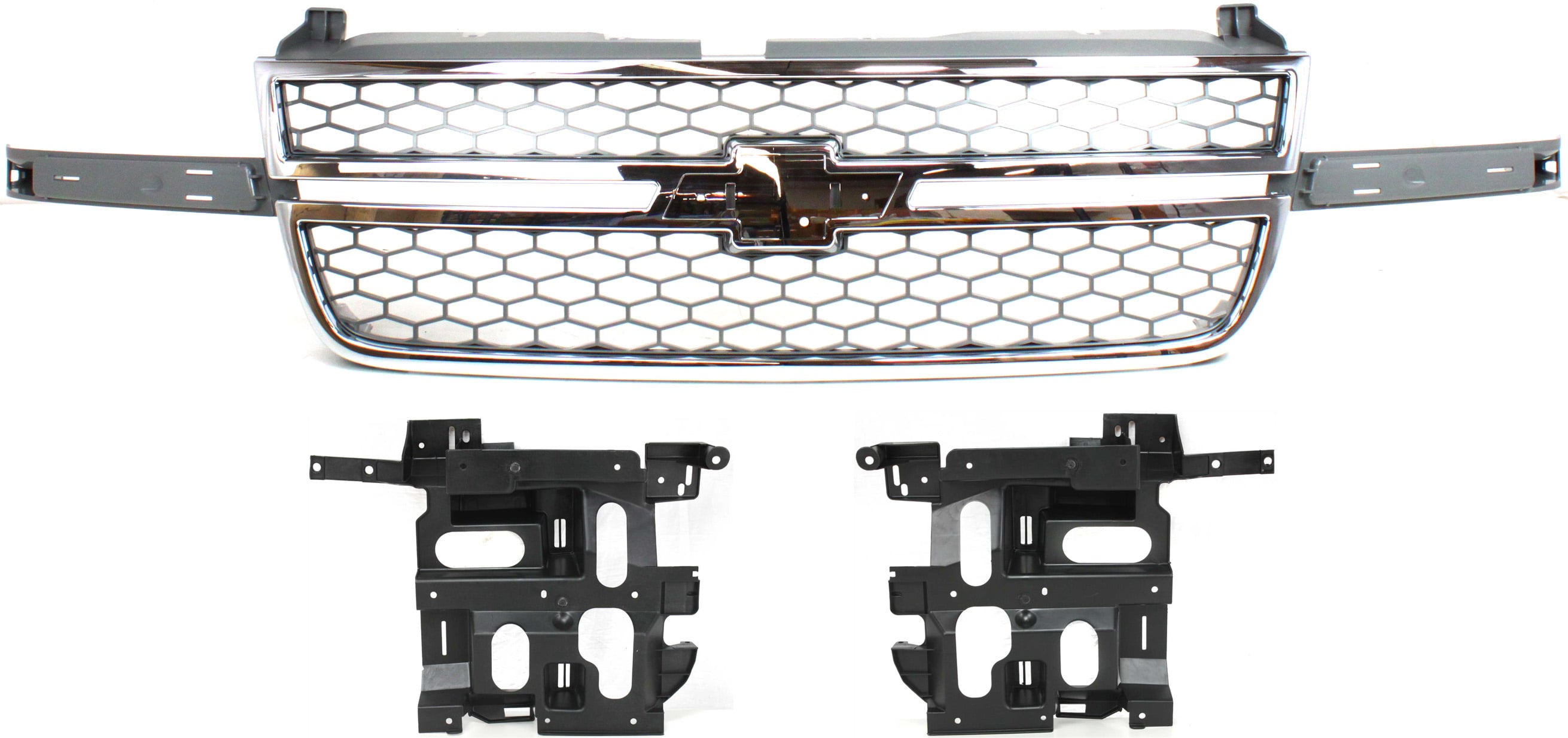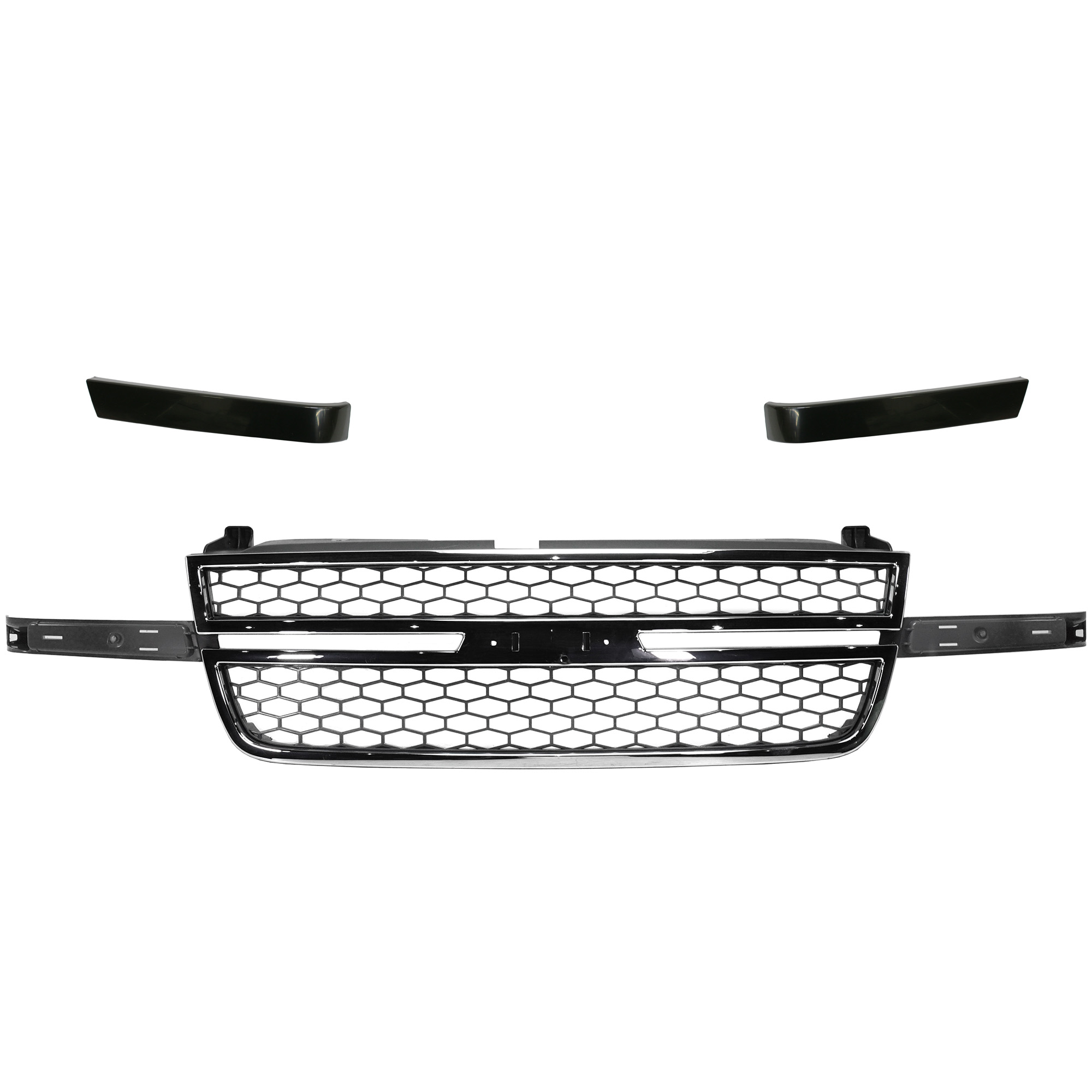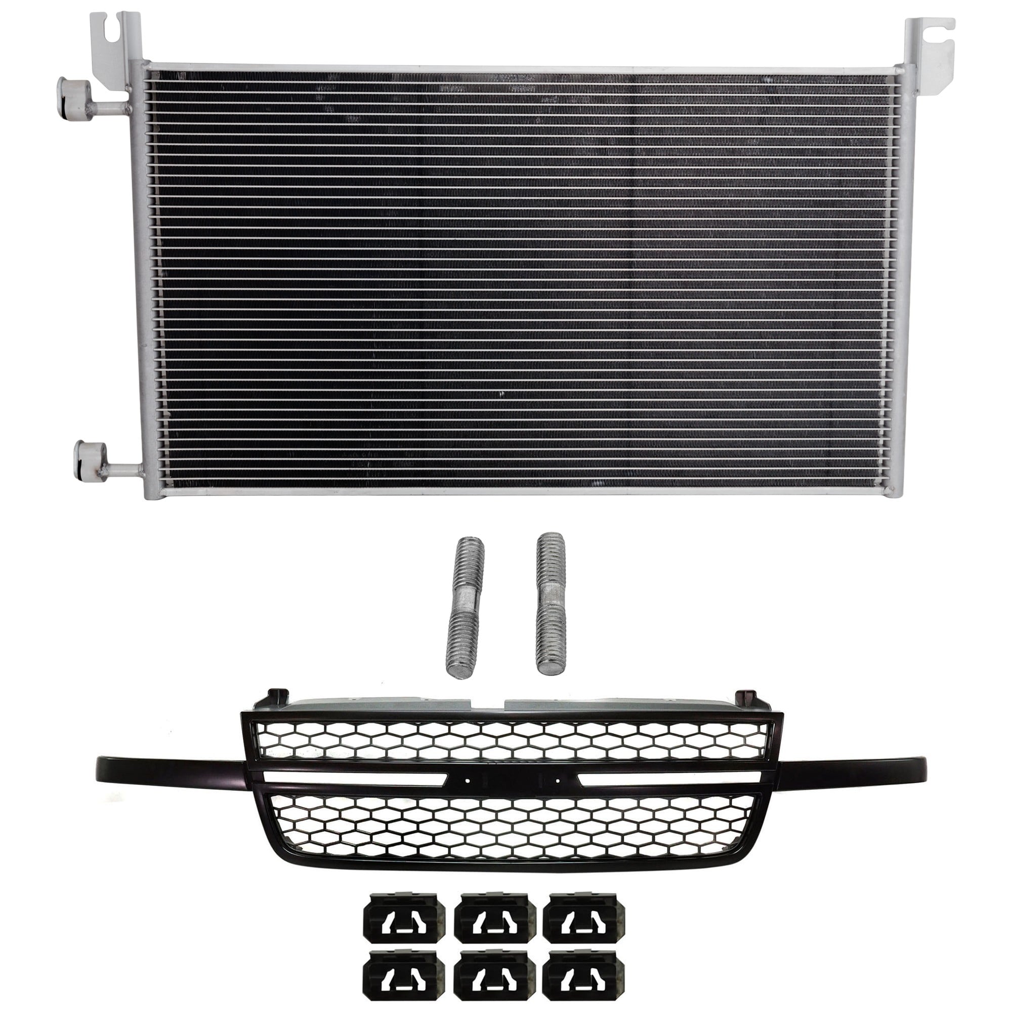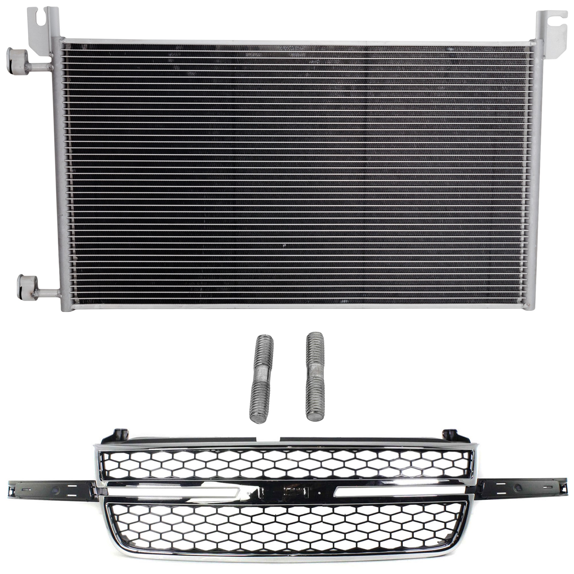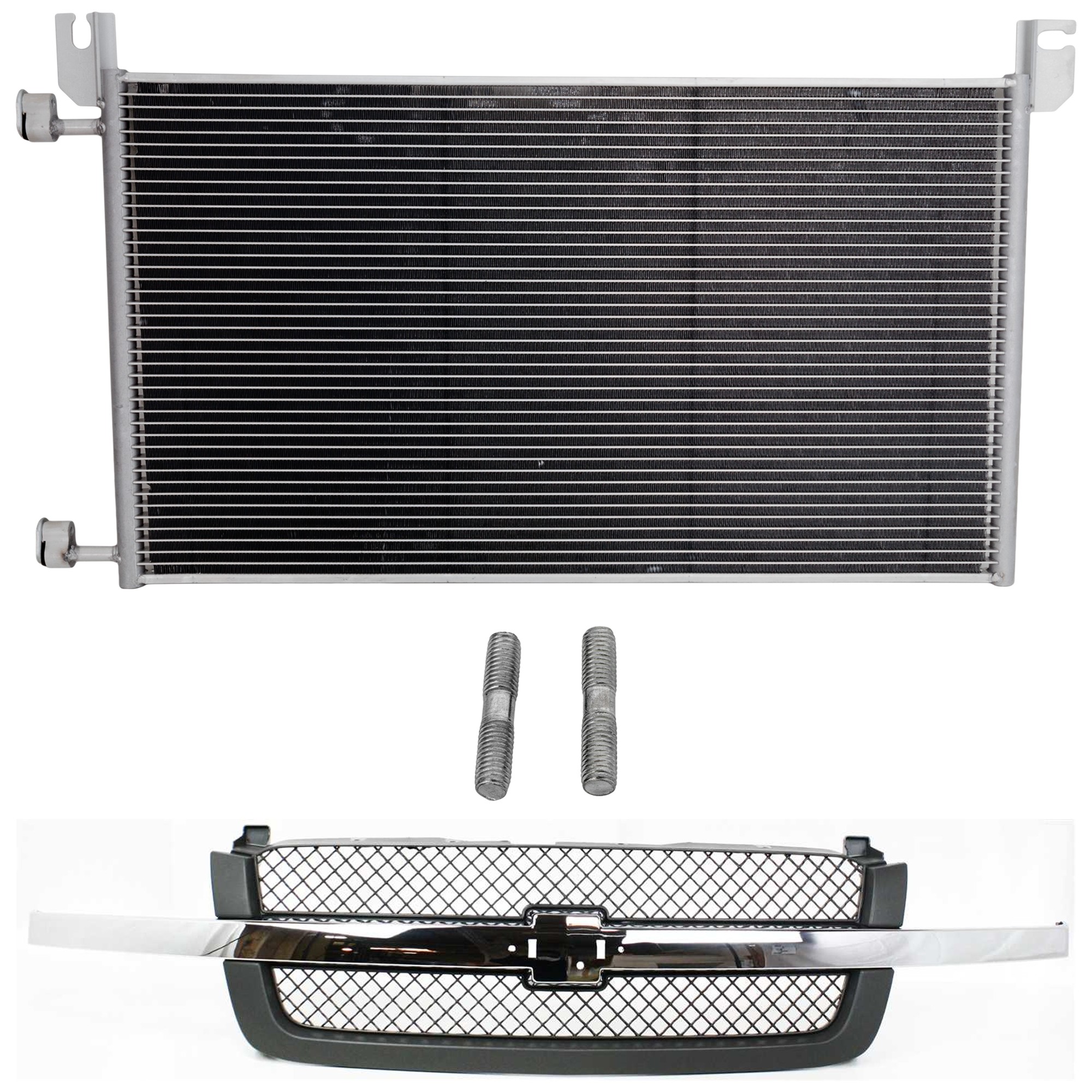 Grille Kit for Chevrolet Avalanche 1500/2500 and Silverado 1500 2003-2006, 2-Piece Chrome and Black, with A/C Condenser Replacement