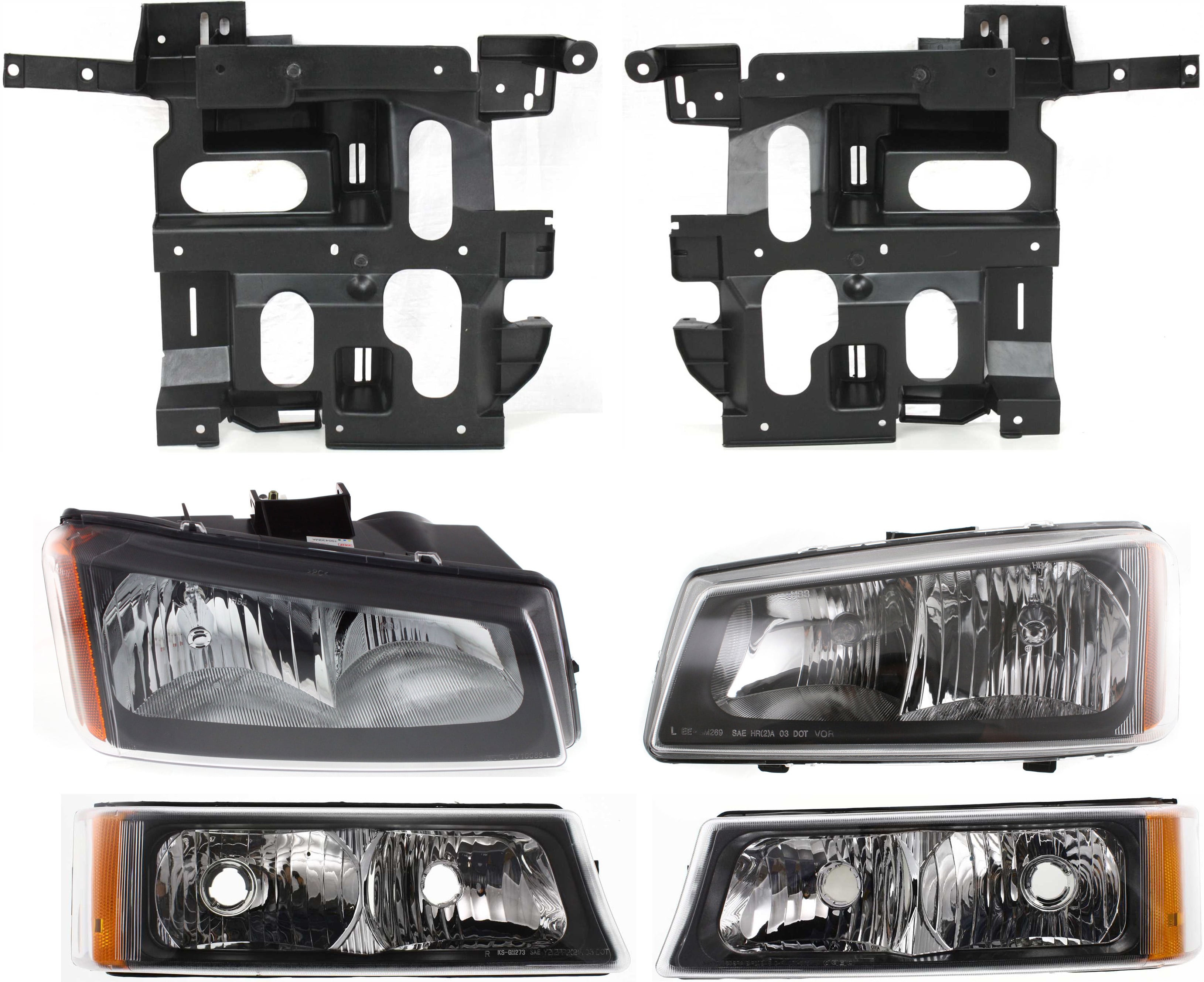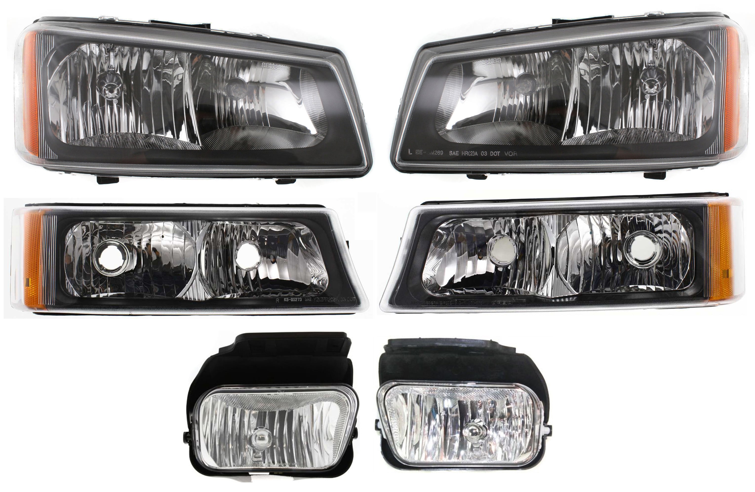 Headlight Assembly Kit for Chevrolet Avalanche 1500/2500 2003-2006, Right (Passenger) and Left (Driver), Halogen, 6-Piece with Fog Lights, Turn Signal Lights, Replacement