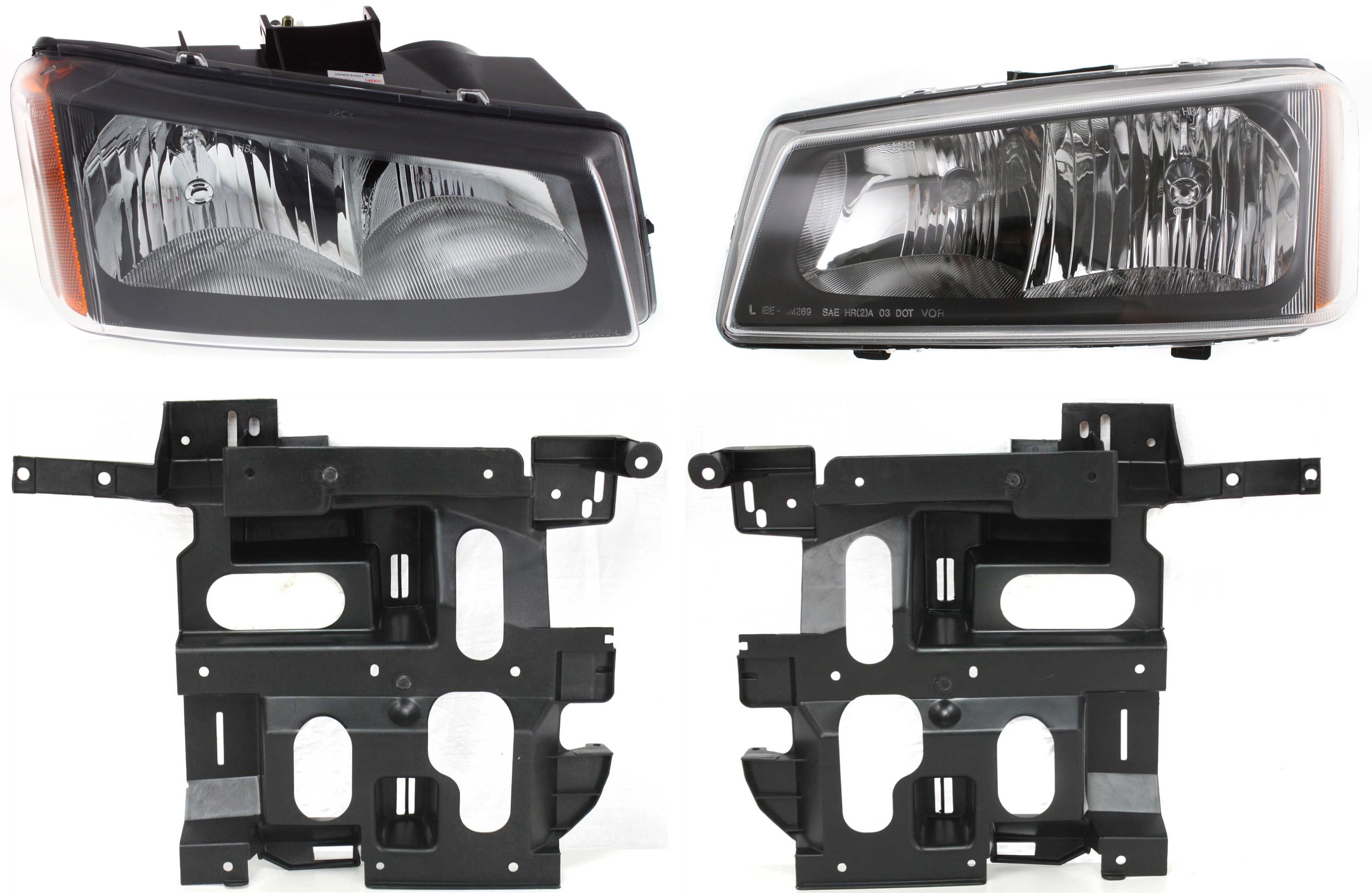 Headlight Assembly for Chevrolet Silverado 2003-2007, Right (Passenger) and Left (Driver), 4-Piece Kit with Halogen Headlight Brackets, Replacement