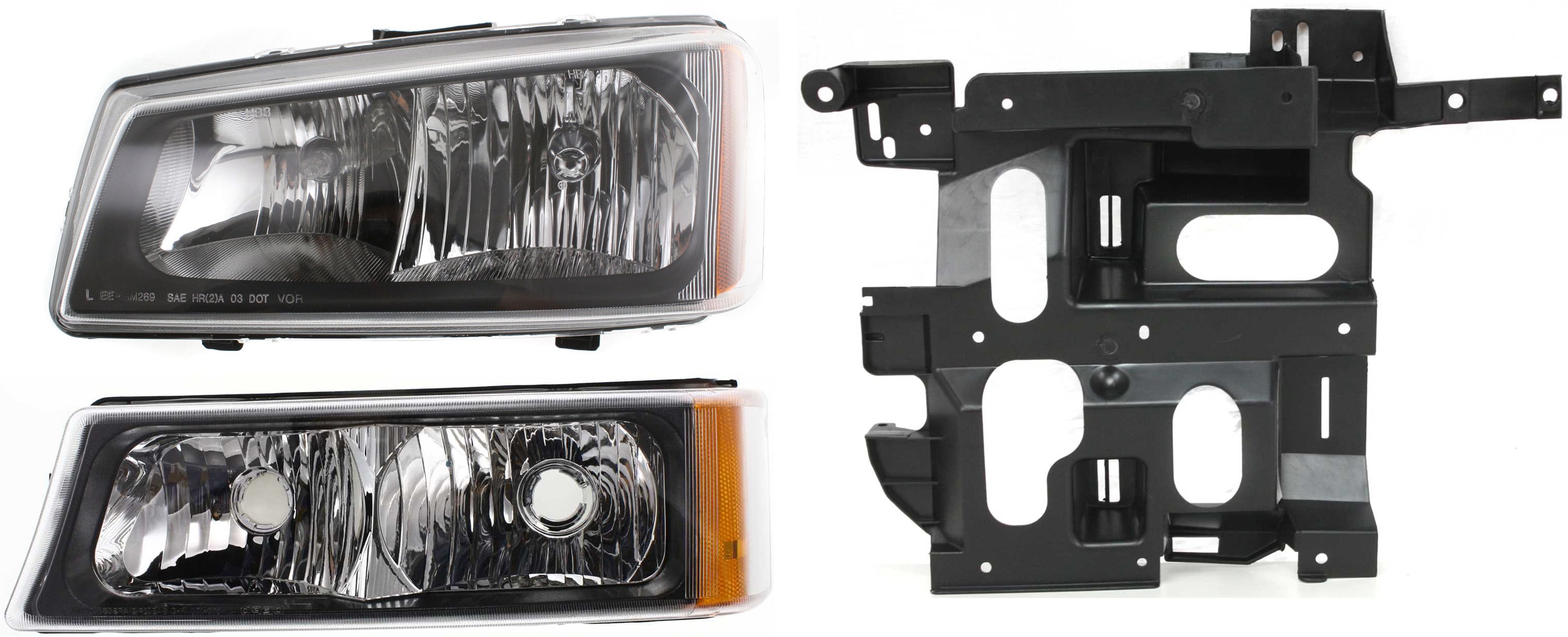 Headlight Assembly 3-Piece Kit for Chevrolet Silverado 2003-2007 Right (Passenger), Halogen, with Headlight Bracket and Turn Signal Light, Replacement
