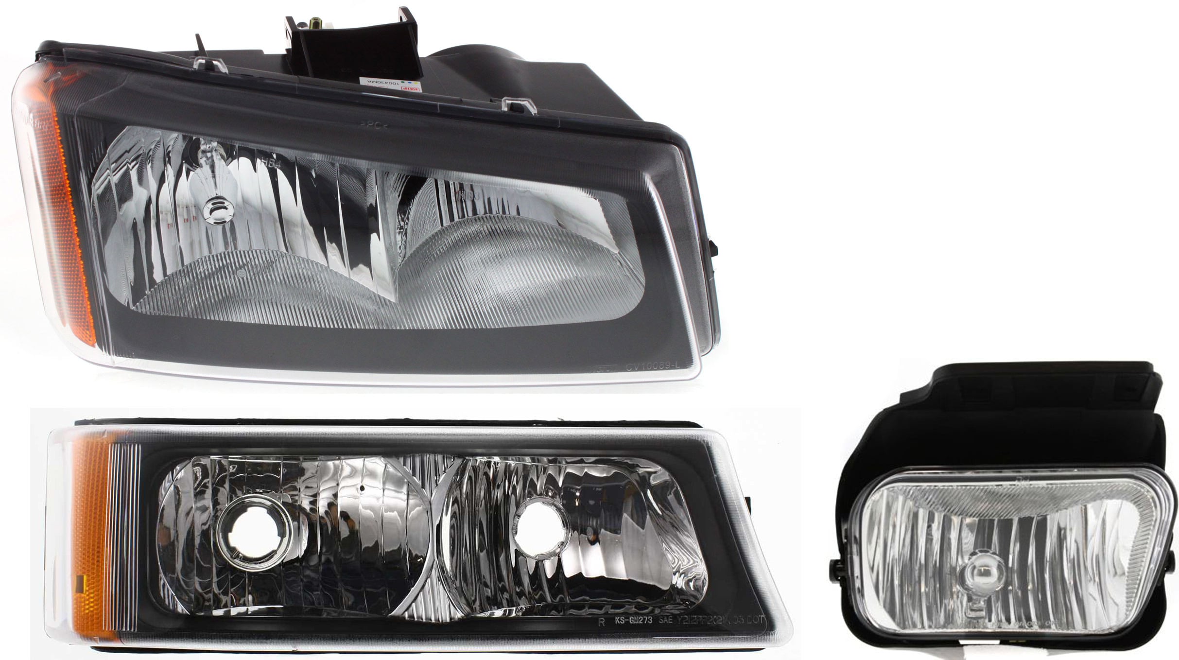 Headlight Assembly Kit for Chevrolet Avalanche 1500/2500 (2003-2006), Right (Passenger) Side, Halogen, 3-Piece with Fog Light and Turn Signal Light, Replacement