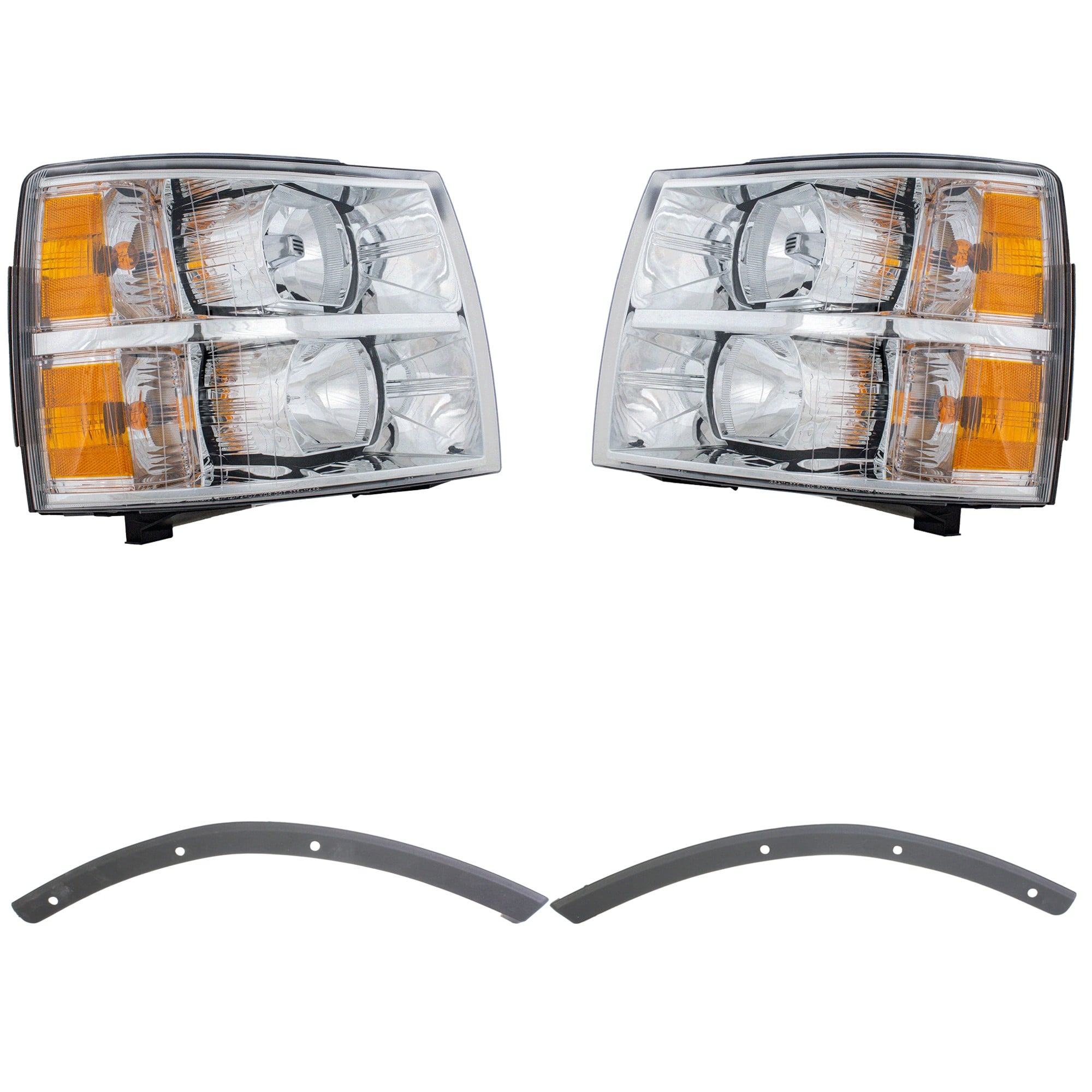 Headlight Assembly Kit for Chevrolet Silverado 1500 (2007-2013), Right (Passenger) and Left (Driver), 4-Piece, Halogen, Excludes 2007 Classic, with Bumper Trim, Replacement