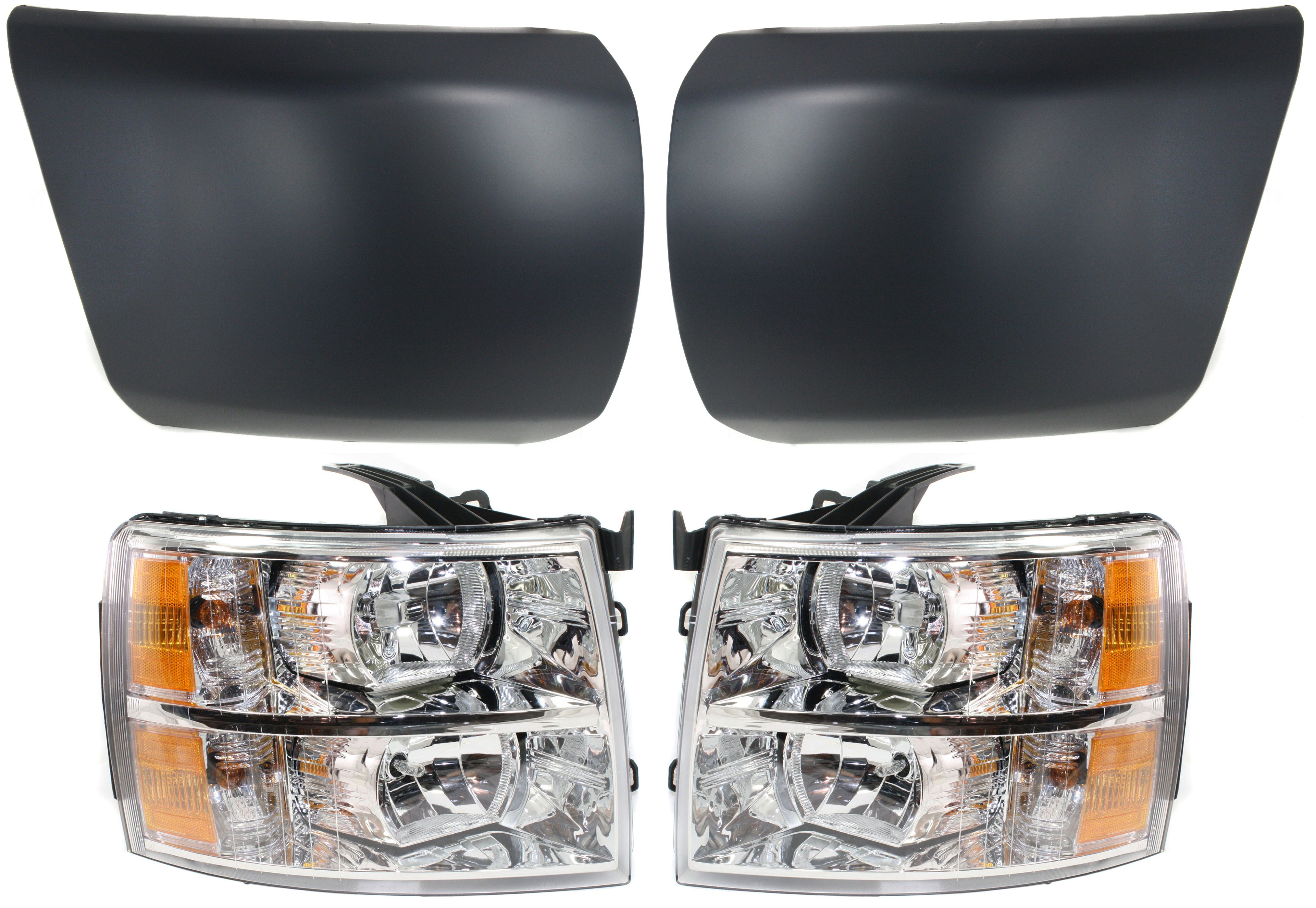 Headlight Assembly for Chevrolet Silverado 1500 (2007-2013), Right (Passenger) and Left (Driver), Halogen, 4-Piece Kit with Bumper Ends Replacement